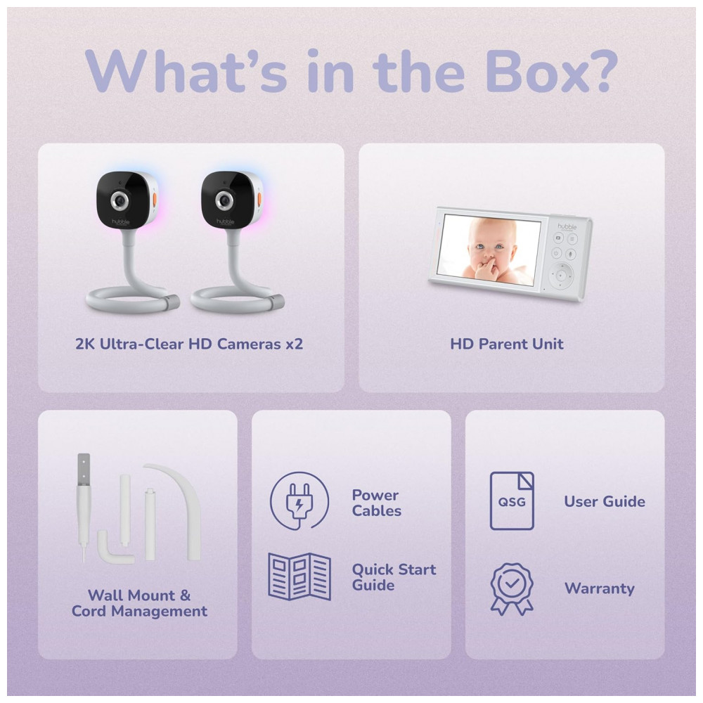 Babá Eletrônica Hubble 2 Câmeras 2K HD Tela 5″ Detecção IA Rosto Virada Choro Prático