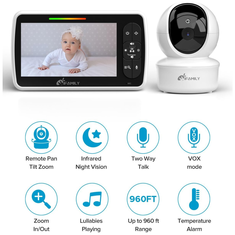 Babá Eletrônica iFamily com Tela de 127 cm e Bateria de 30h – Controle Remoto PTZ Áudio Duplo Visão Noturna Termômetro Alcance 300m
