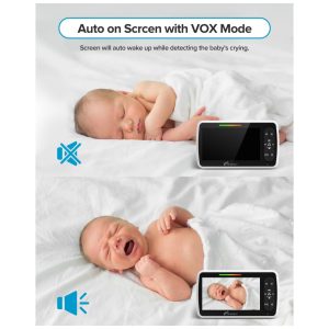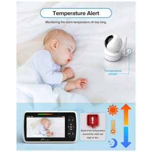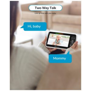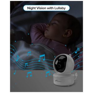 A câmera de bebê com visão completa da sala permite controlar facilmente o ambiente, aproximando, afastando e inclinando a câmera para visualizar qualquer espaço no berçário, quarto infantil ou em qualquer ambiente da sua casa. A tela grande oferece uma imagem cristalina para tranquilidade dos pais. Com conexão sem fio 2.4GHz FHSS, este monitor de bebê inteligente opera sem a necessidade de wifi, garantindo privacidade e segurança. A visão noturna de alta qualidade ilumina o rosto do bebê sem incomodá-lo, proporcionando uma imagem vibrante, mesmo no escuro. Além disso, o monitor oferece recursos excepcionais para o conforto do bebê, como exibição da temperatura ambiente, áudio bidirecional e canções de ninar. Notificações de desconexão, modo eco para economia de bateria, expansão para até 4 câmeras, iluminação LED ativada por som e alarme/timer, este monitor de bebê é completo e versátil. Pode ser configurado na parede ou em uma superfície plana.