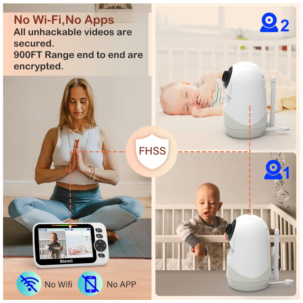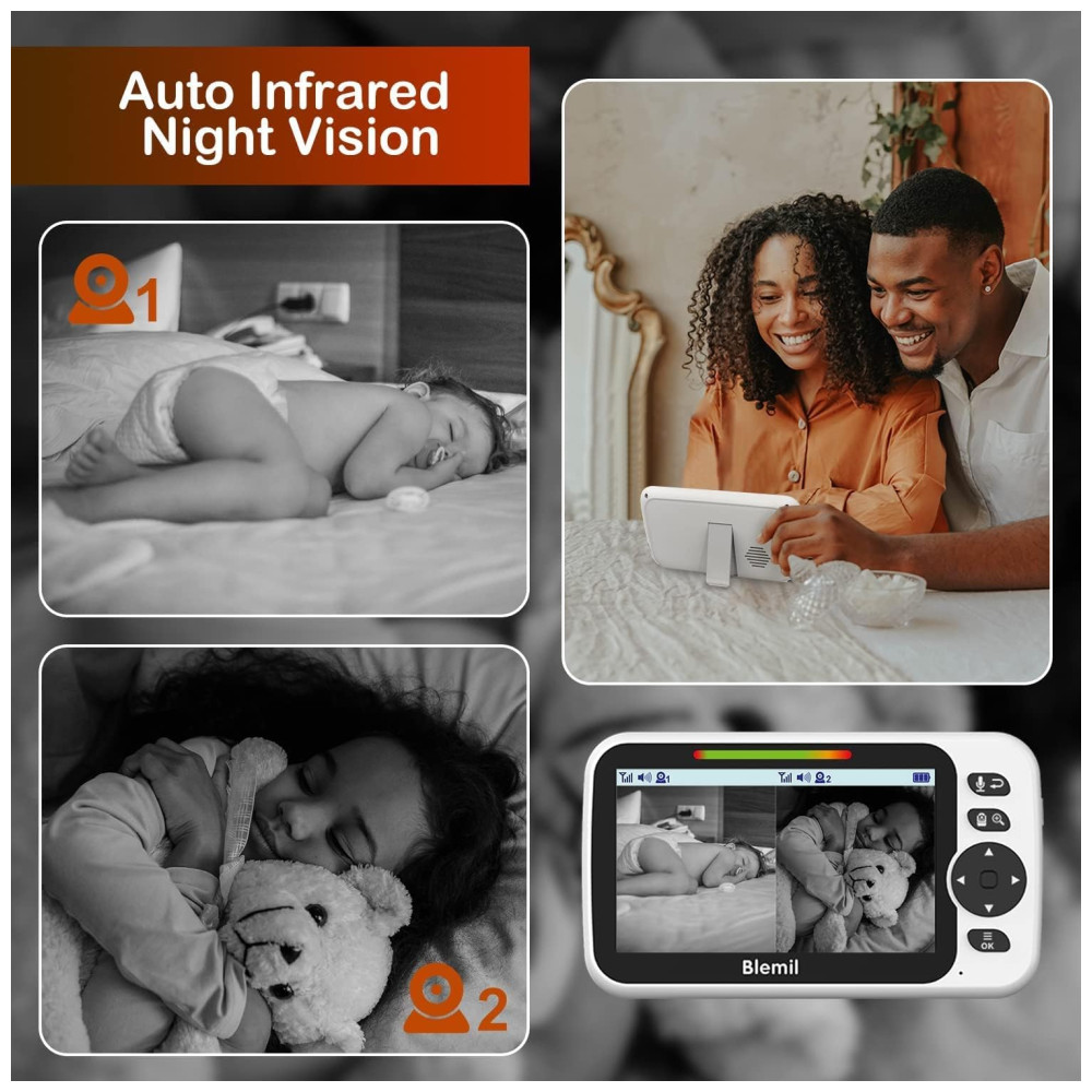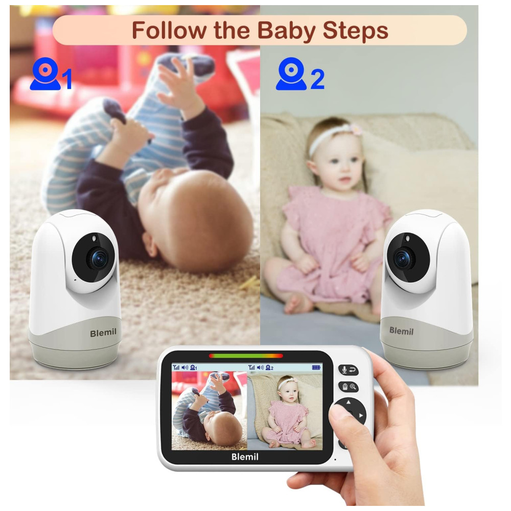 Babá Eletrônica Monitor de Bebê com Bateria de 30 horas e 2 Câmeras de Vídeo de Tela Dividida Blemil BL9052-2 Branca