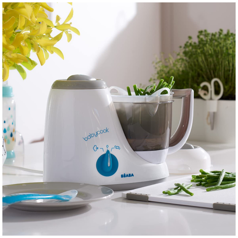 Cor Branco, Cinza FAÇA A COMIDA DO BEBÊ EM 15 MINUTOS OU MENOS COM O BABYCOOK O Babycook é um aparelho de bancada compacto e único e patenteado que funciona como vaporizador, liquidificador, aquecedor e descongelador para preparar refeições saudáveis e frescas para o bebê. VAPOR Cozinhe rapidamente vegetais, frutas e carnes no vapor em 15 minutos ou menos, preservando suas vitaminas e sabores. Ao economizar a água condensada após o cozimento no vapor, você pode adicionar nutrientes valiosos de volta à comida do bebê. BLEND Purê e bata os alimentos até a consistência desejada, tornando os supermacios, grossos ou em qualquer lugar para o bebê. REAQUECIMENTO , DESCONGELAÇÃO Os pais também podem usar o BABYCOOK para reaquecer ou descongelar alimentos pré cozidos rapidamente. A limpeza é rápida e fácil com uma tigela e uma cesta adequadas para a máquina de lavar louça do rack superior. A tigela é feita de polipropileno inquebrável sem BPA e a cesta de cozinha de polipropileno PP transparente. O Babycook foi projetado para funcionar apenas com uma tomada aterrada de 120 V. UMA MARCA EM QUE VOCÊ PODE CONFIAR Desde 1989, a Beaba é amplamente reconhecida como líder mundial na criação de produtos infantis inovadores . Por meio de um compromisso com o design, inovação e tecnologia, Beaba cria os produtos infantis mais bonitos e funcionais do mundo