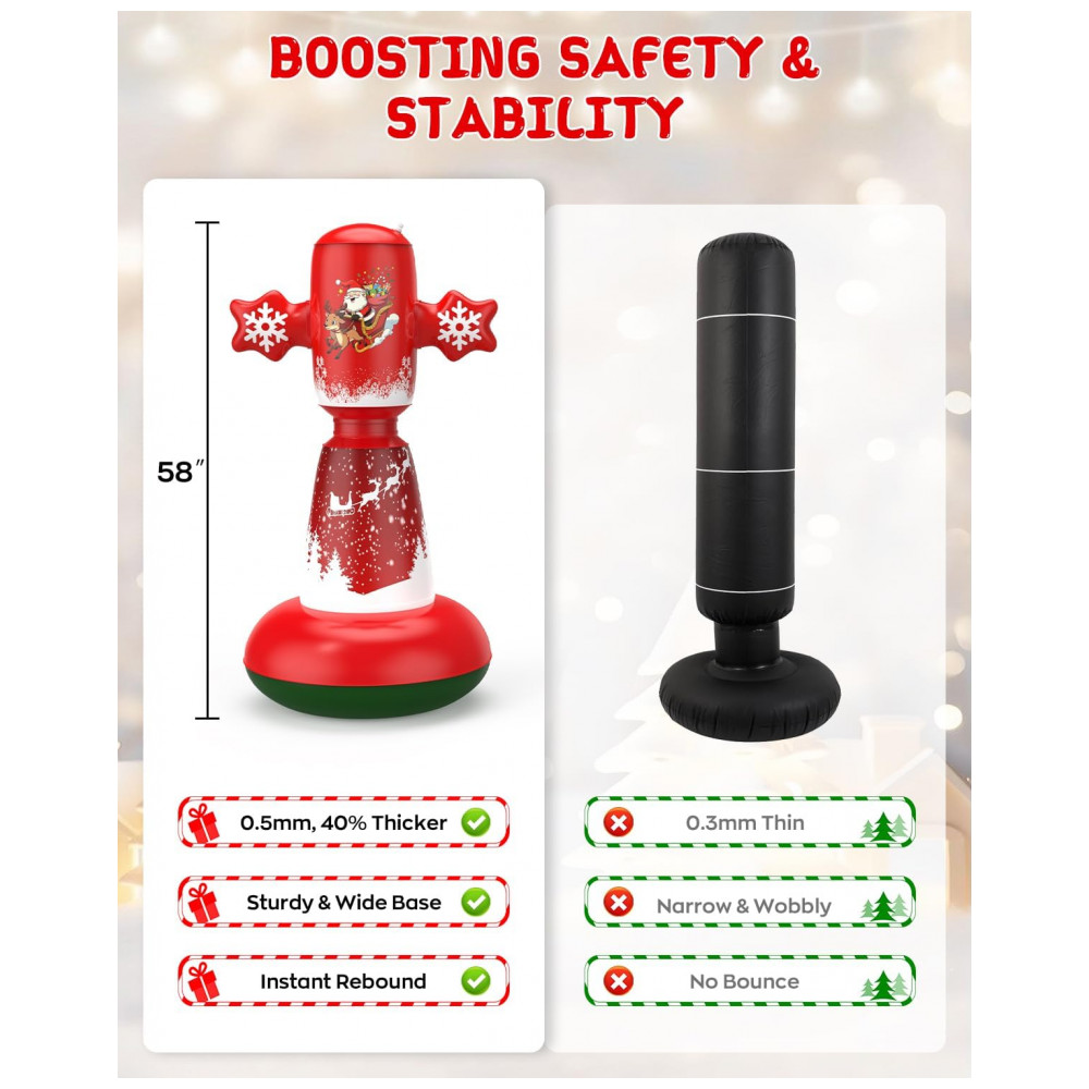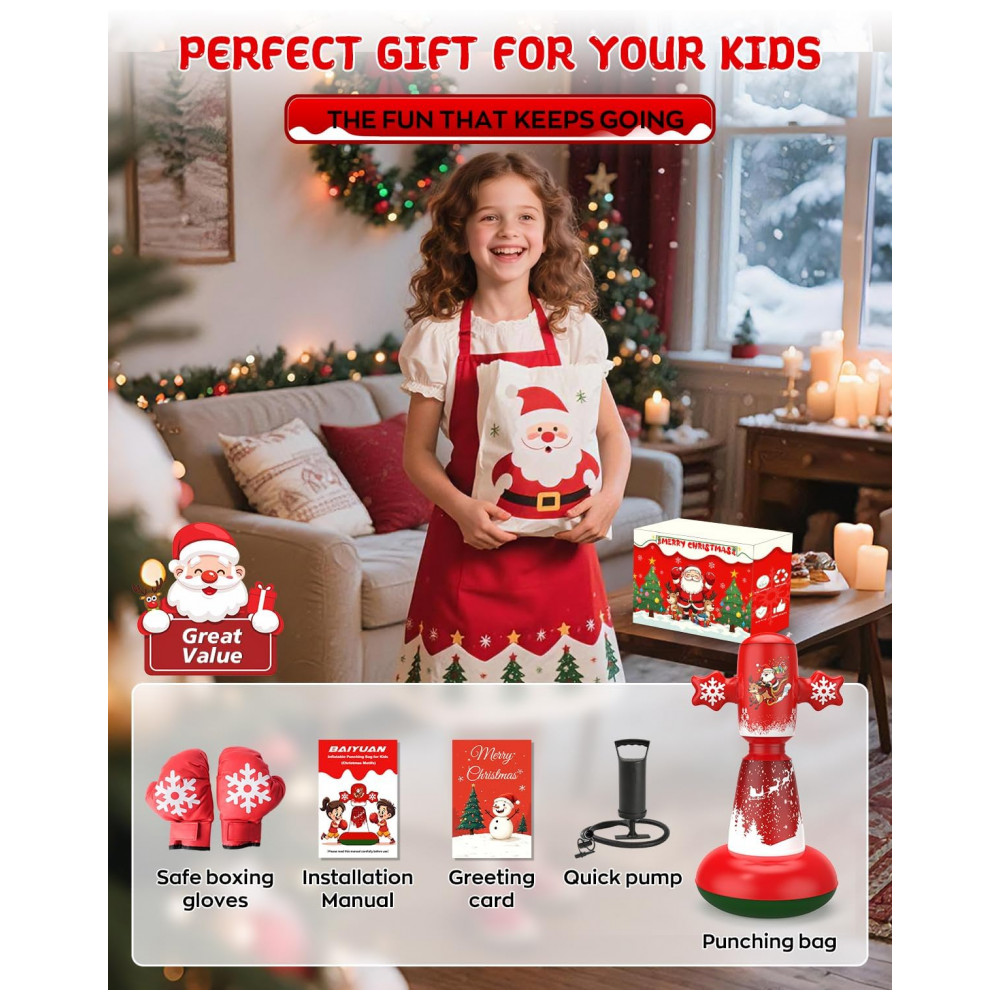 BaiYuan Bolsa de Pancadas Inflável 147 cm para Crianças – Treino de Karatê Taekwondo com Tema Natalino Vermelho e Verde