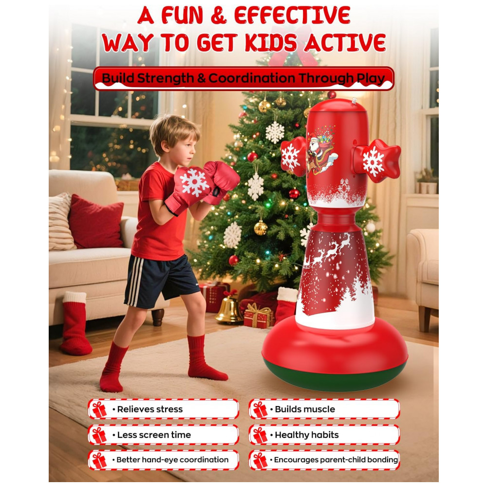Componentes Inclusos: Bomba de ar, cartão de Natal, instruções e embalagem elegante, luvas de boxe para crianças, bolsa de pancadas para crianças