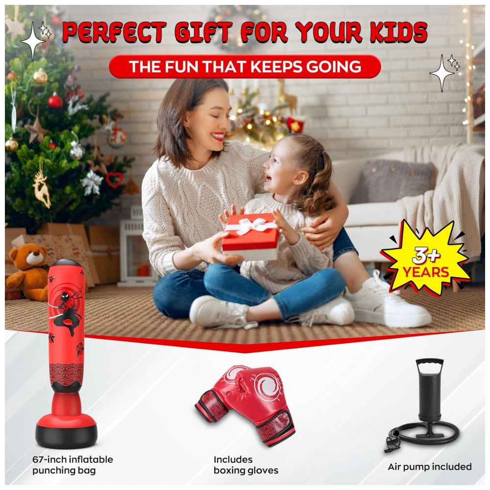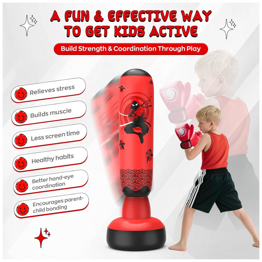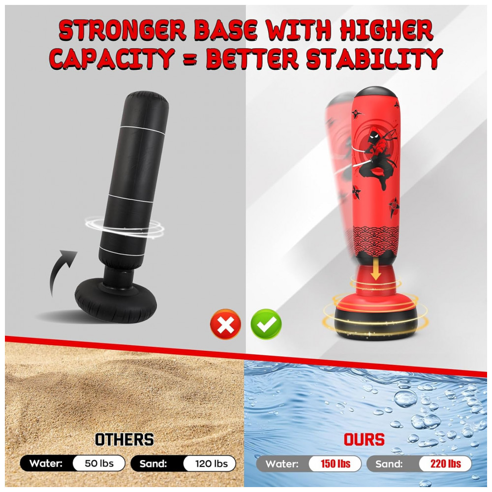 BaiYuan Saco de Pancadas Inflável 170 cm para Crianças – Treino de Boxe Karatê e Taekwondo Brinquedo Ativo Estável para Meninos e Meninas