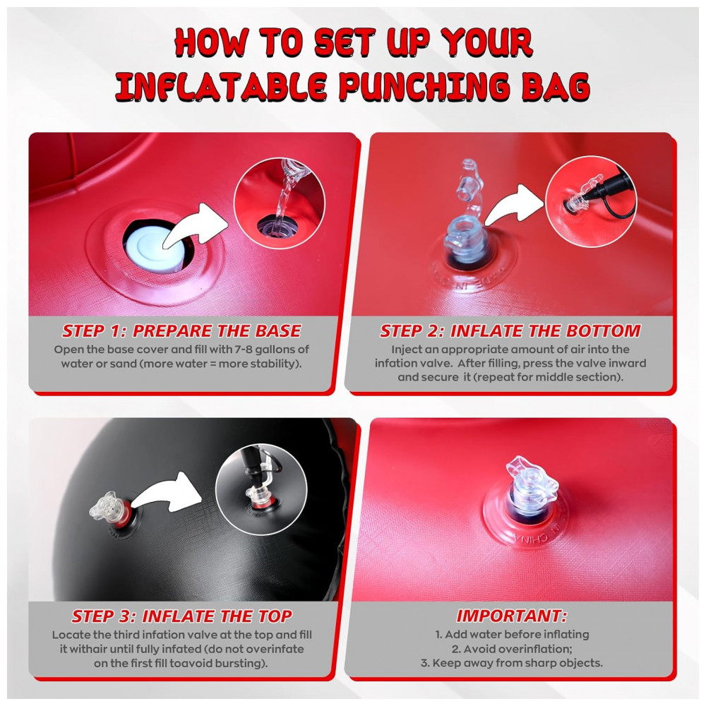 Este saco de pancadas inflável de alta qualidade da BaiYuan é fabricado com PVC durável de 0,5 mm, especialmente reforçado para suportar até 10.000 golpes com resistência comprovada. Sua superfície lisa e sem costuras protege as mãos, enquanto o design de dupla camada oferece melhor vedação contra vazamentos de água e ar, garantindo diversão prolongada para você e seus filhos. Equipado com três câmaras de ar independentes, o saco proporciona um retorno rápido e dinâmico a cada soco ou chute, tornando a experiência mais divertida e estimulante. Com impressionantes 170 cm de altura, o saco possui uma base larga de 69 cm para estabilidade superior durante brincadeiras ativas, perfeito para irmãos e encontros com amigos. Ideal para crianças de 3 a 12 anos, promove o desenvolvimento da força, reflexos e ajuda a aliviar o estresse, além de incentivar a movimentação e reduzir o tempo de tela. O produto é fácil de montar em três passos simples: basta encher a base com água, inflar a parte inferior e o corpo principal, e começar a brincar. Inclui luvas de boxe tamanho 8 oz e remendos para reparos, garantindo uso prolongado. Para melhores resultados, é recomendado conferir e reajustar o ar antes de cada uso, assegurando rebotes mais eficazes e diversão constante para as crianças.