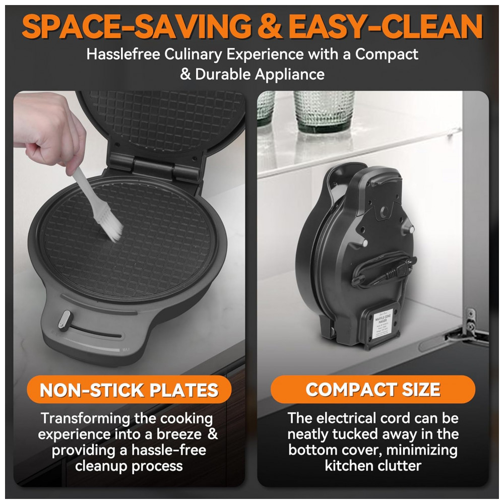 Operação Simples e Eficiente: Sem necessidade de habilidades especiais, basta ligar a máquina, despejar a massa, ajustar o controle de calor e virar quando indicado. Em poucos minutos, você terá uma casquinha dourada e crocante pronta para saborear.