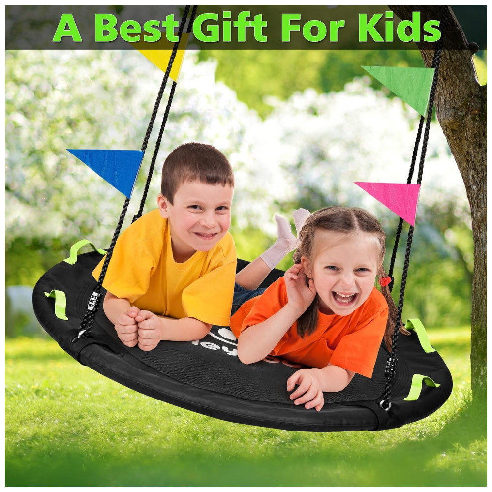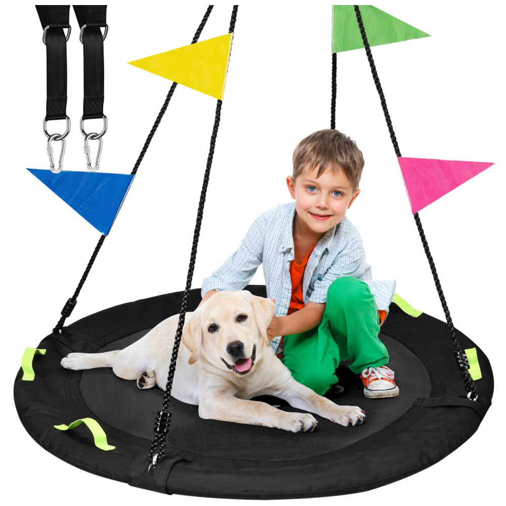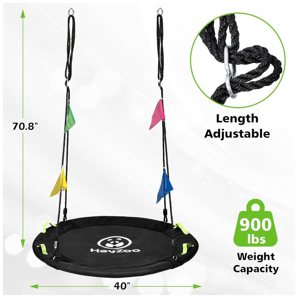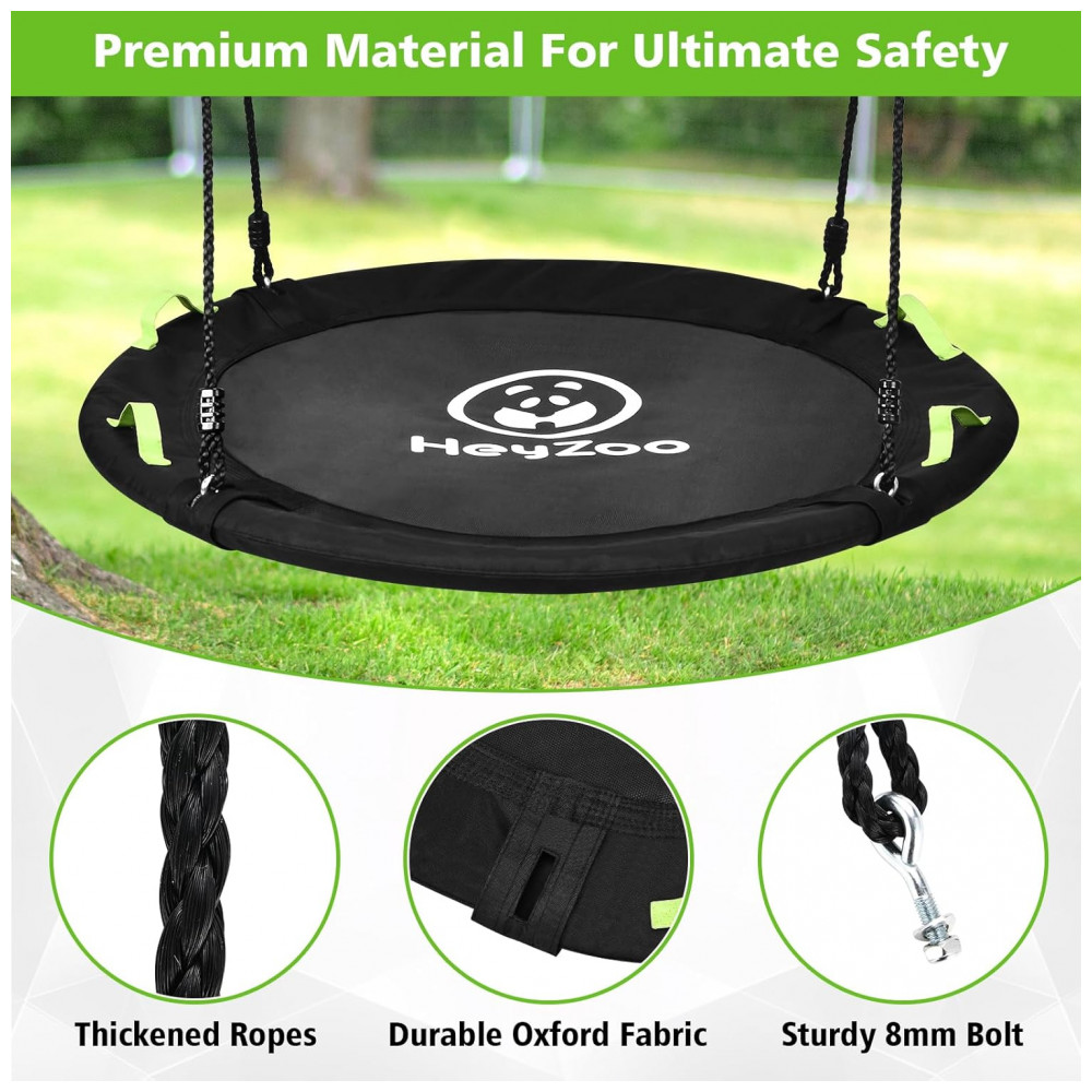 Balanço Redondo Saucer 102 cm HeyZoo Preto com Cordas Multi-Fios Capacidade 408 kg para Quintal