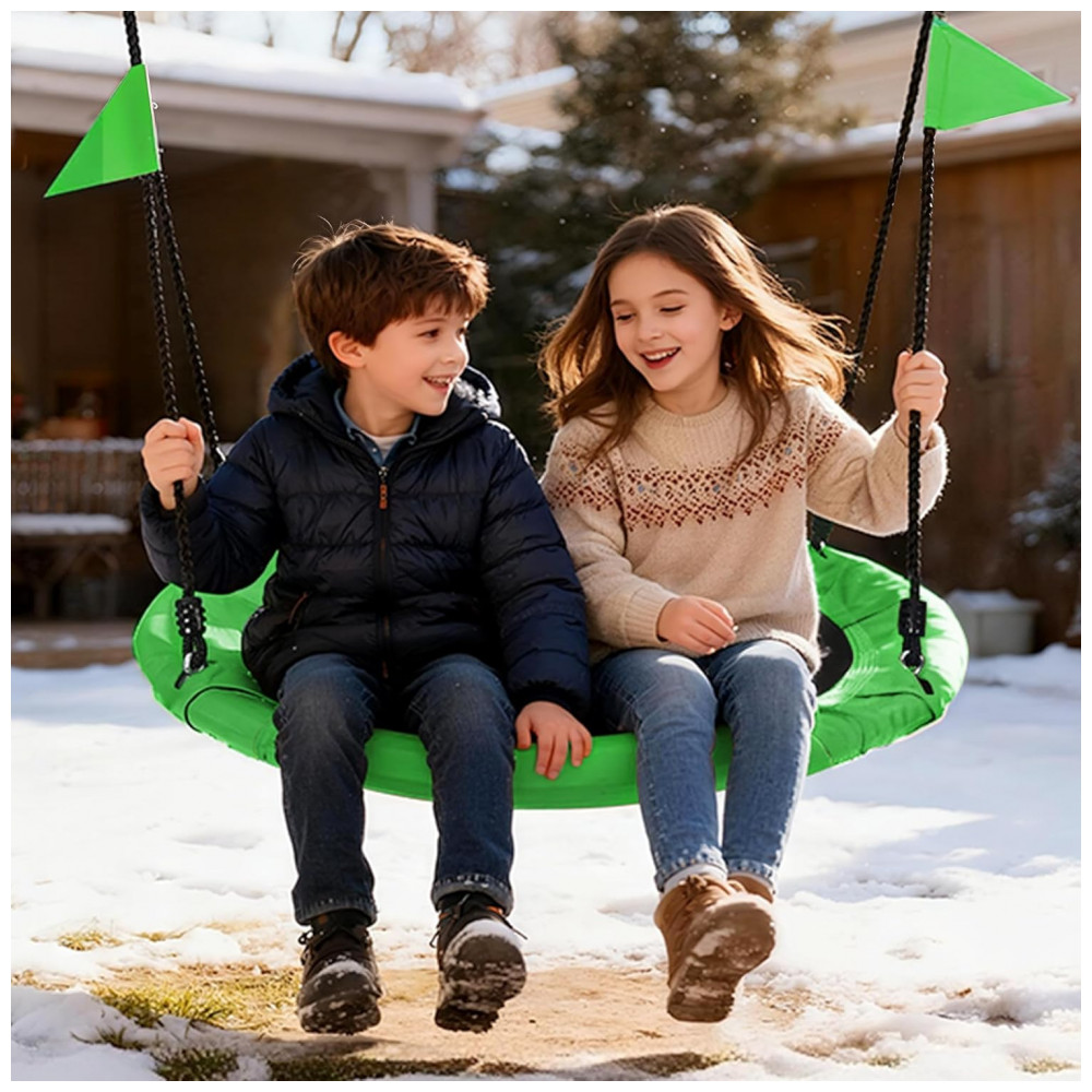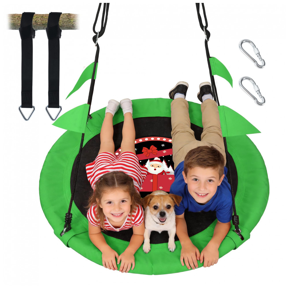 Balanço Redondo Saucer 102 cm PACEARTH Verde Natalino com Cordas Multi-Fios Ajustáveis Capacidade 408 kg