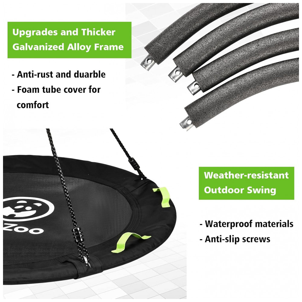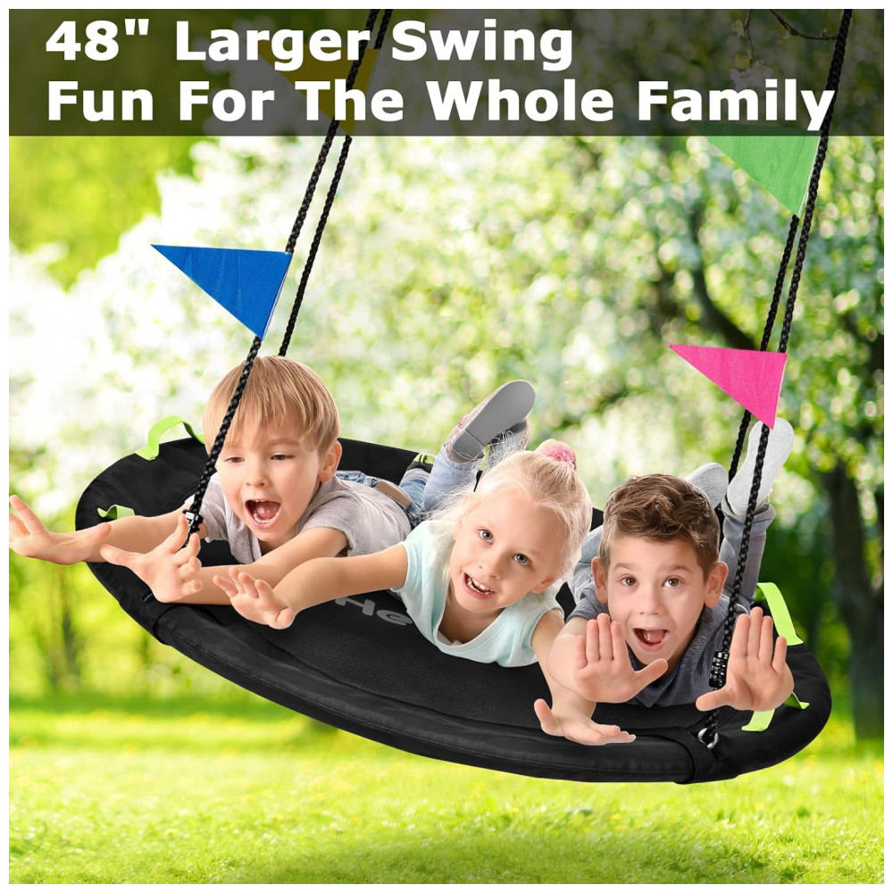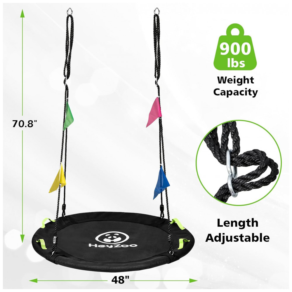 Balanço Redondo Saucer 122 cm HeyZoo Preto com Cordas Multi-Fios Capacidade 408 kg para Quintal