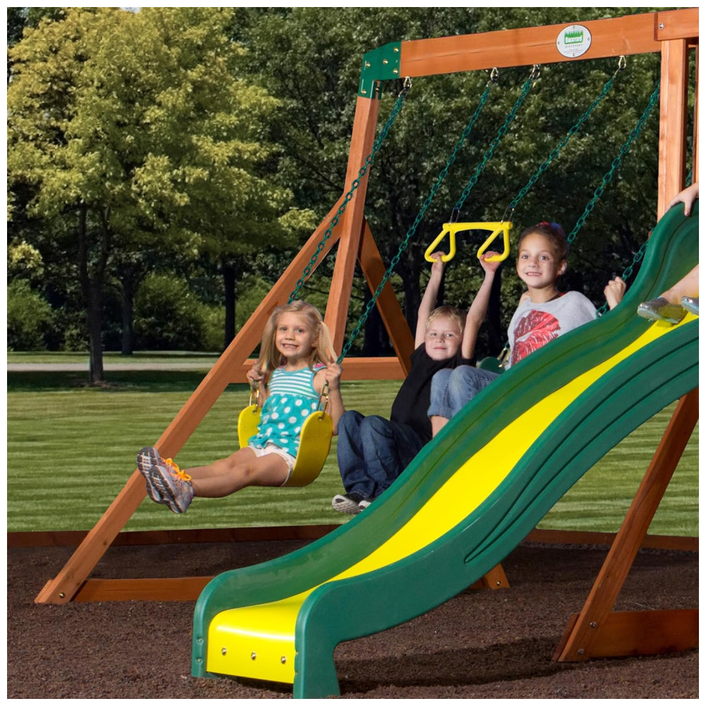Balanços Backyard Discovery Tanglewood Playset de Madeira Cedro Balanço Duplo Estrutura Resistente e Durável Ideal para Crianças de 3 a 10 Anos.