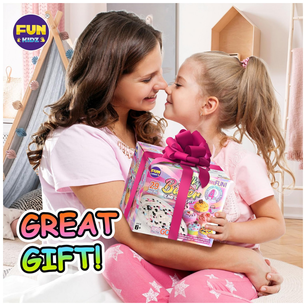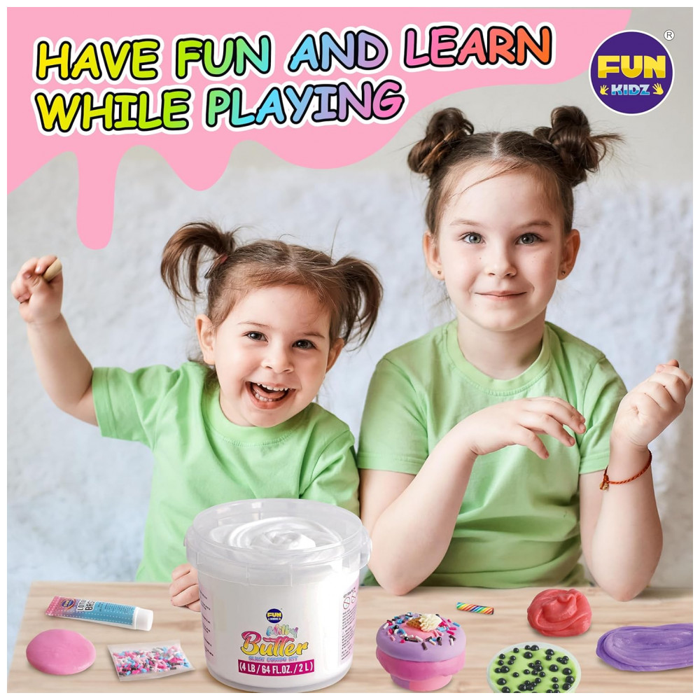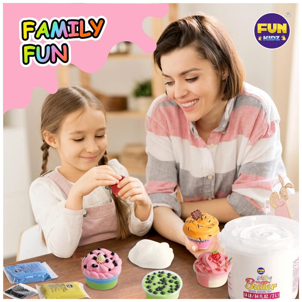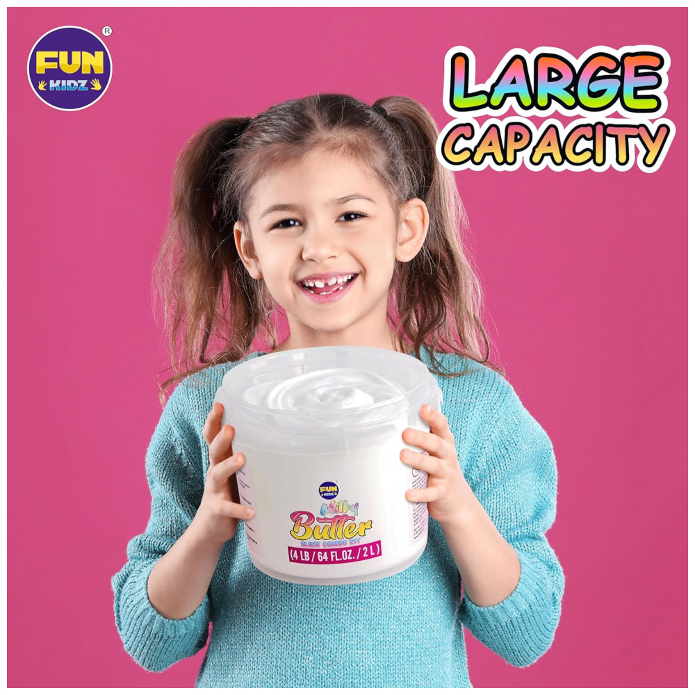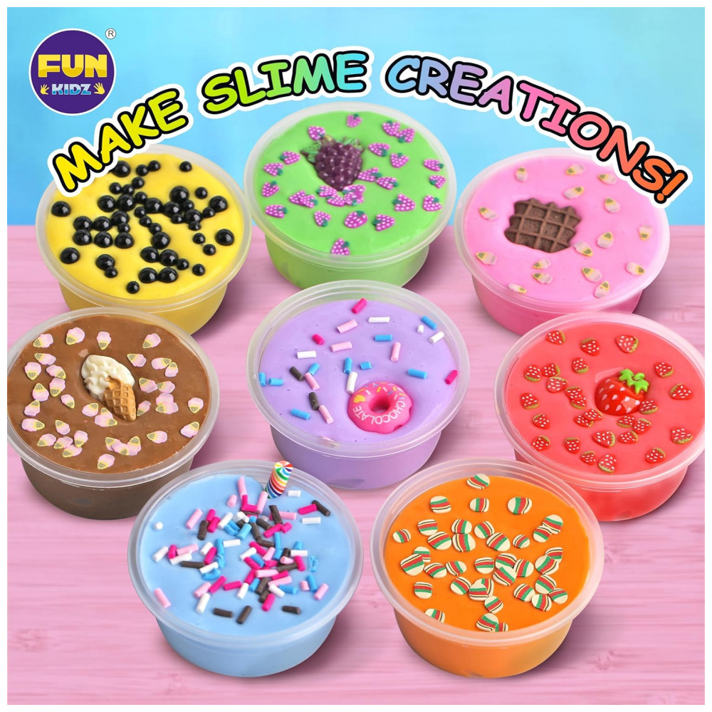 Divirta-se com o pacote de slime branco FunKidz, que oferece horas de diversão e criatividade. Este kit de slime branco leitoso inclui uma variedade de suprimentos para fazer slime, como fatias de sorvete, fatias de morango e uva, fatias de hambúrguer, contas de boba, brilhos doces, argila de 8 cores, base de loção e muito mais. Com 1,81 quilos de slime pré-fabricado com aromas de leite e 29 suplementos para misturar e combinar, você pode criar infinitas possibilidades de slime.