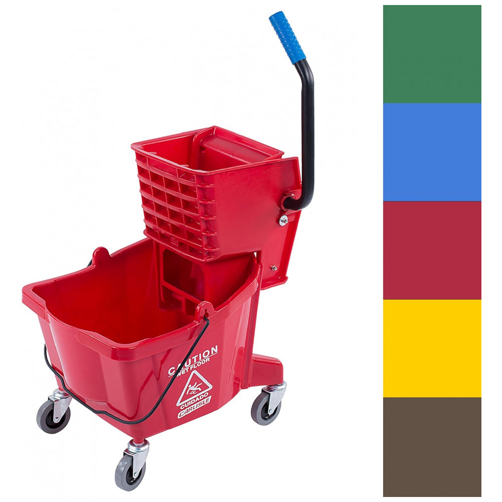 Mantenha todas as suas áreas importantes de tráfego de pedestres limpas e secas com este balde de esfregona Carlisle de 26 litros. Criada com polietileno durável e resistente à corrosão, esta caçamba é extremamente robusta e minimiza a fadiga, transportando grandes volumes de líquidos e resíduos com o mínimo esforço. Rodízios duráveis fazem deste balde uma solução verdadeiramente completa para problemas e perigos de resíduos líquidos.