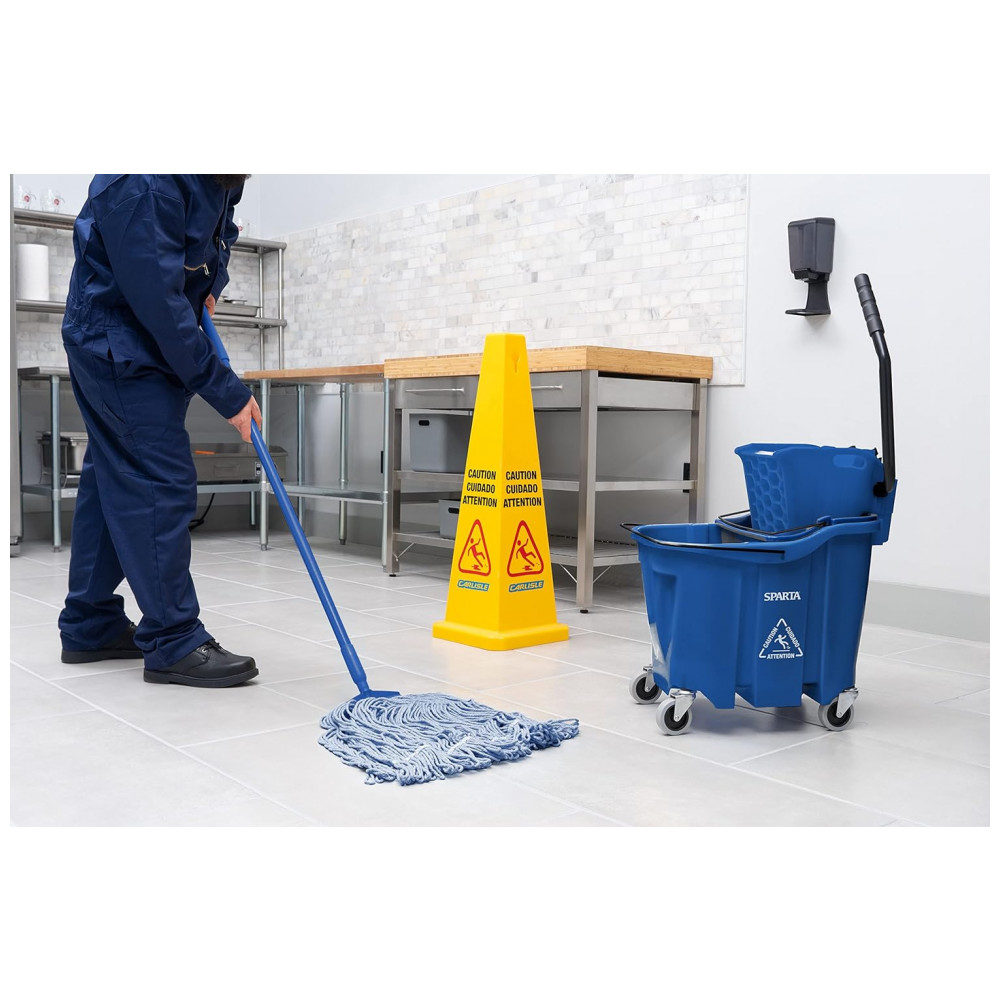 Confira a mais recente tecnologia de limpeza de pisos da Sparta Melhoramos o balde industrial de esfregona adicionando quebra de vigília e abaixando o centro de gravidade para que não tombe e derrame quando estiver cheio. Emparelhado com um balde extra para água suja, que permite manter a água suja separada da água limpa e um espremedor de perfil mais baixo, essa combinação mantém o piso ainda mais limpo, facilitando aos zeladores fazer menos viagens para trocar a água. Esta combinação de balde é perfeita para restaurantes, hotéis, hospitais, serviços de limpeza e muito mais. Melhorias de produtos como essa tornam as decisões de compra ainda mais fáceis ao planejar sua estratégia geral de manutenção.