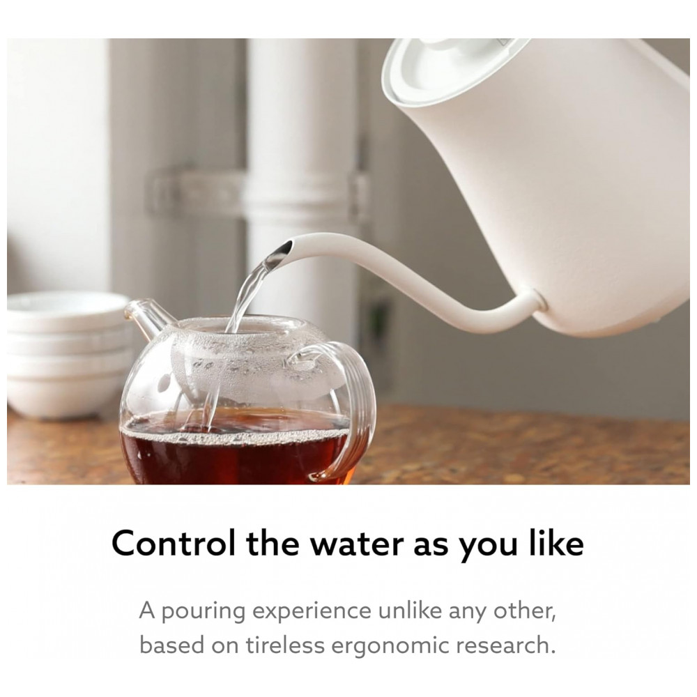 A BALMUDA The Kettle é uma chaleira elétrica leve, compacta e de design sofisticado, perfeita para suas necessidades diárias na cozinha. Com capacidade de 0,6 litros, ela comporta a quantidade ideal para preparar três xícaras padrão de café ou dois canecos grandes, proporcionando praticidade e economia de tempo. Seu bico de precisão foi minuciosamente desenvolvido para oferecer um fluxo de água perfeito, ideal para o método de preparo por pour-over, permitindo um controle total da vazão. O cabo ergonômico encaixa-se confortavelmente na mão, garantindo segurança e facilidade ao direcionar a água quente exatamente onde desejar. Com aquecimento rápido, esta chaleira ferve a água em poucos minutos, eliminando a espera e tornando seu momento do café ou chá ainda mais prazeroso. Outro diferencial é o delicado indicador luminoso de neon no cabo, que emite um brilho suave visível de qualquer ângulo, enriquecendo a experiência durante o processo de aquecimento. Além de funcional, a BALMUDA The Kettle possui acabamento em aço inoxidável pintado, combinando durabilidade e estética refinada, fazendo do ato de ferver água um momento agradável e elegante no seu dia a dia.