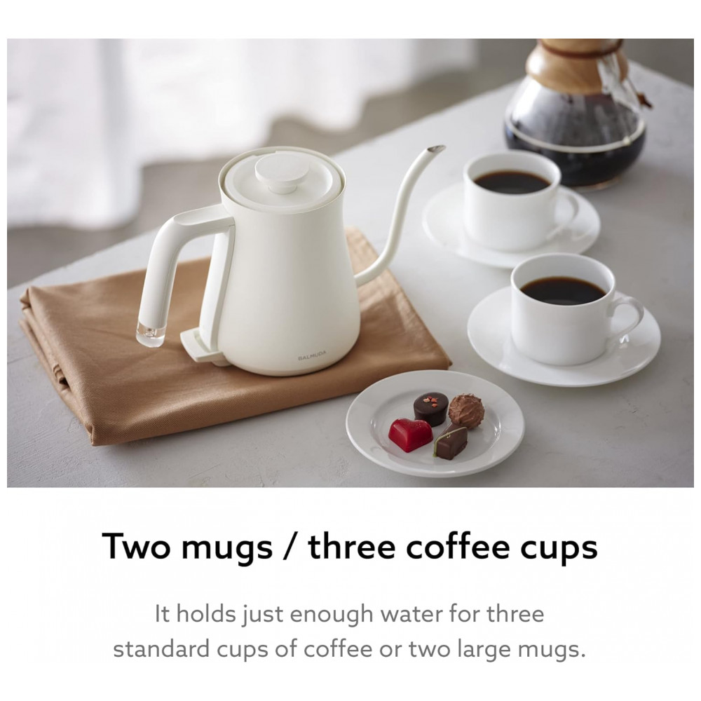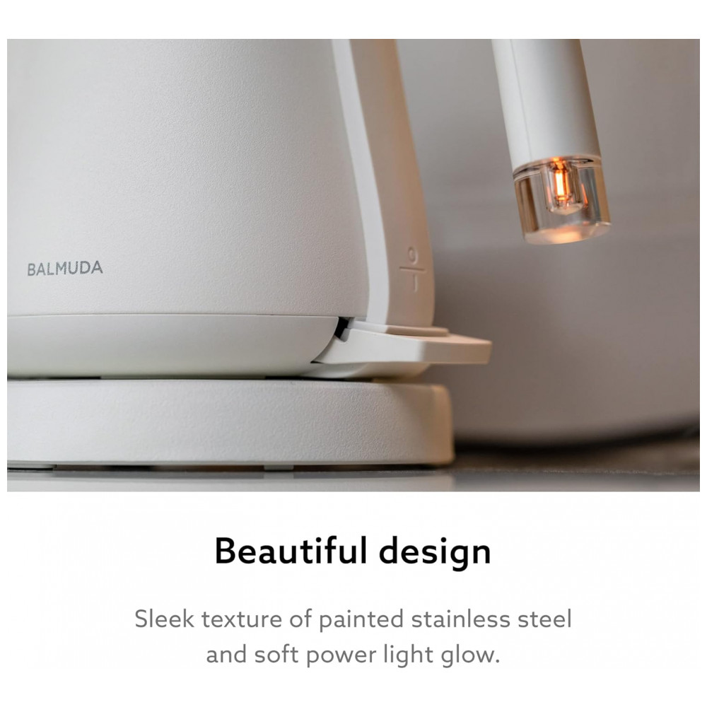 BALMUDA The Kettle – Chaleira Elétrica Leve de Aço Inoxidável 06L com Indicador Neon – Ideal para Chá e Café – Versão EUA Branca