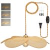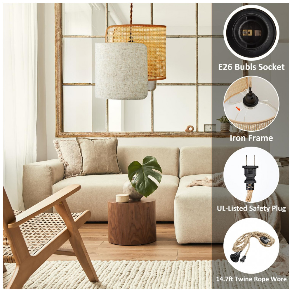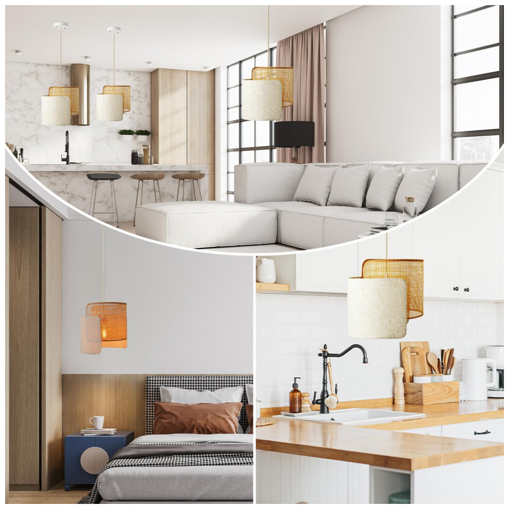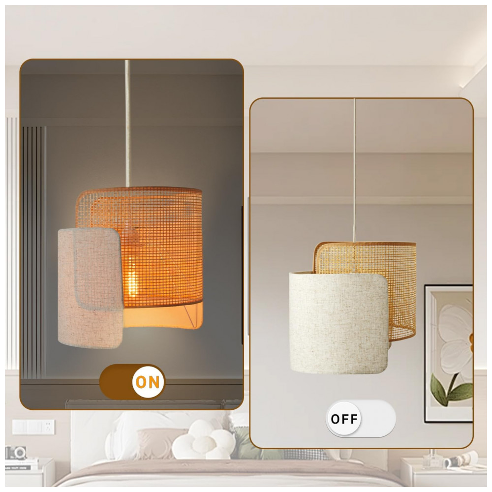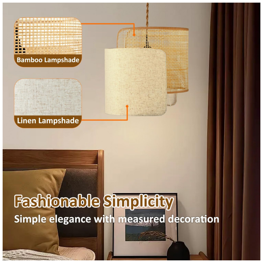 BAMWUAN Luminária Pendente Boho com Ajuste de Altura até 88 cm Abajur de Bambu e Linho para Sala Cozinha e Quarto
