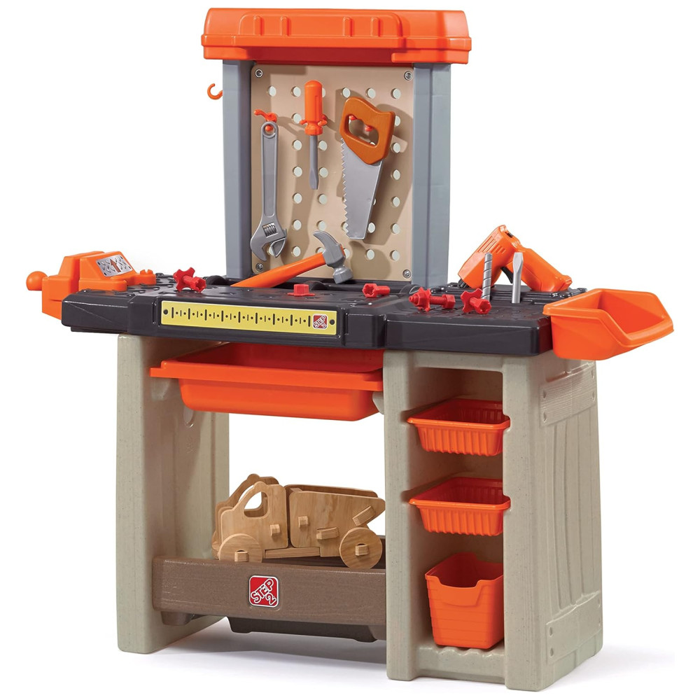 Bancada de Ferramentas Infantil Interno/Externo Interativa com Sons 35 Acessórios Para Crianças a Partir de 3 Anos Step2 Colorida