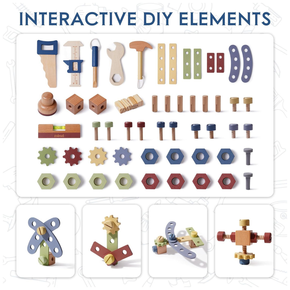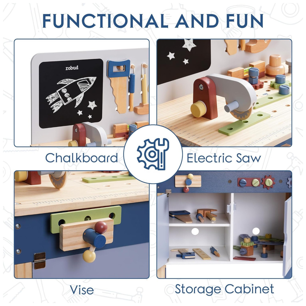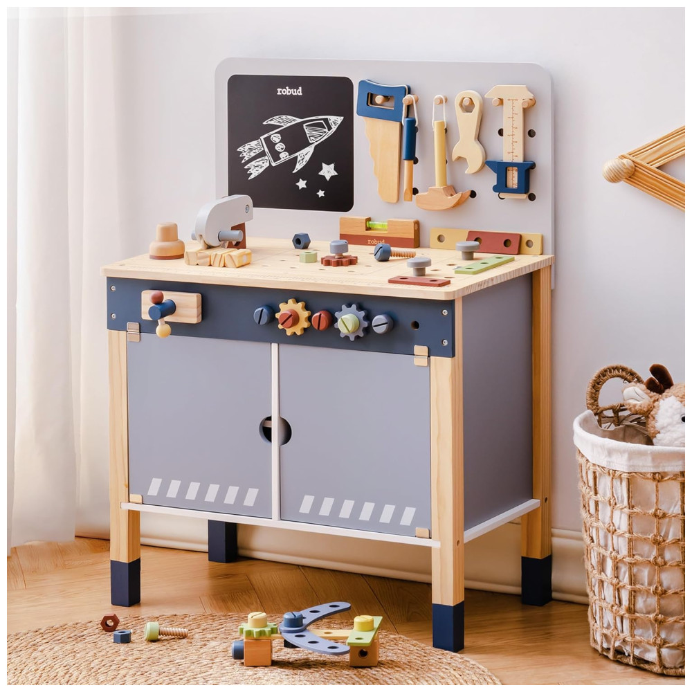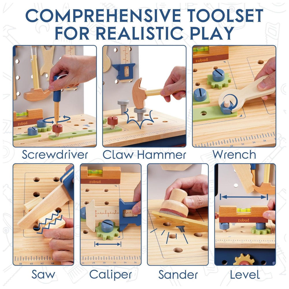 Bancada Educativa de Brinquedo de Madeira ROBUD Kit de Ferramentas de Madeira para Crianças Oficina de Construção Criativa Tamanho Grande