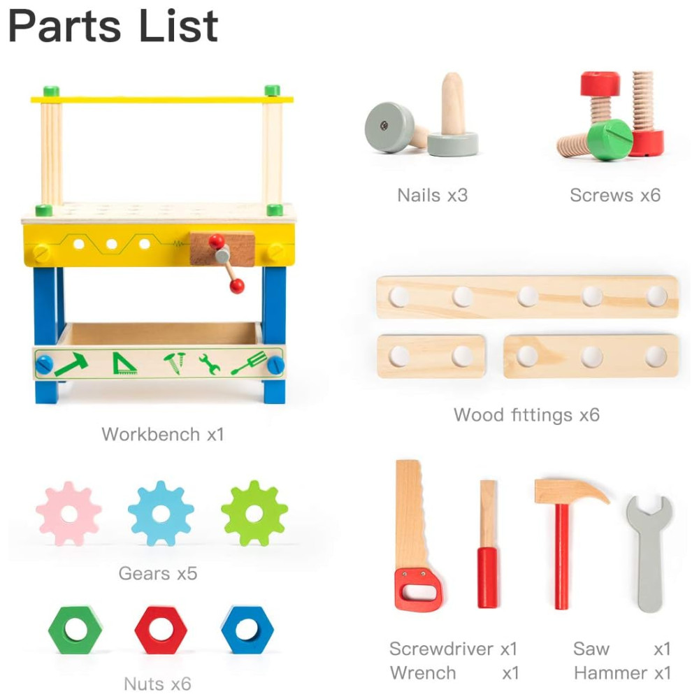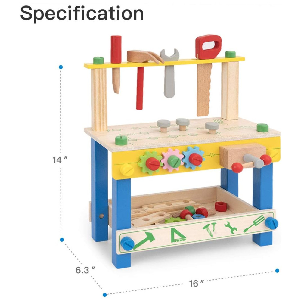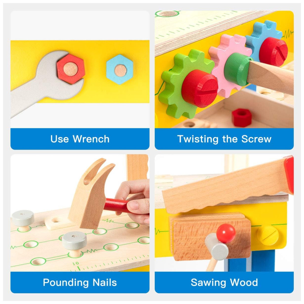 Bancada Educativa de Madeira Maciça ROBUD para Crianças Brinquedo de Aniversário para Meninos e Meninas de 3 anos+