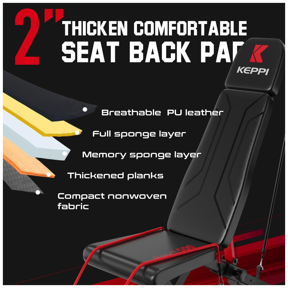 Banco de peso com design KEPPI 2022 A KEPPI se especializa no desenvolvimento e produção de equipamentos de ginástica há mais de 10 anos. Bench500 é a nova atualização do banco de peso que é perfeito para todos os tipos de treino de corpo inteiro.