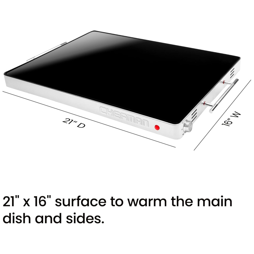 Bandeja de Aquecimento Temperatura Ajustável Perfeito Para Buffets Restaurantes Festas Eventos Jantares em sa CHEFMAN RJ22 BLACK TC CA Prateado