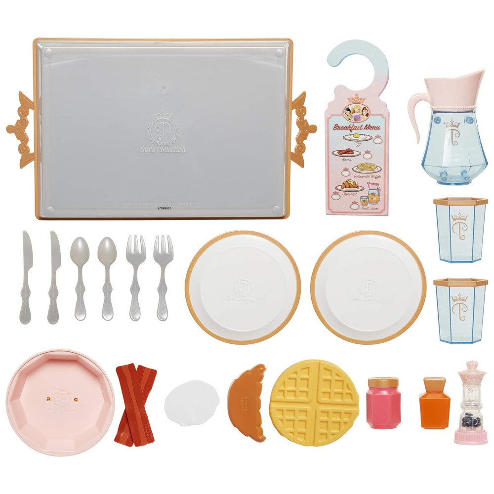 O Conjunto de Serviço de Quarto Rise Shine da Coleção Estilo Disney Princess oferece tudo que uma princesa precisa para começar o dia com glamour, mesmo durante fabulosas férias. Desfrute de um delicioso café da manhã para dois, servido com elegância em uma bandeja requintada. Ao levantar a tampa do prato, descubra um croissant, waffle, bacon e ovo frito, acompanhados por uma variedade de coberturas. Complete sua refeição com uma jarra e dois copos, vivenciando o luxuoso serviço de quarto digno de uma princesa viajante.