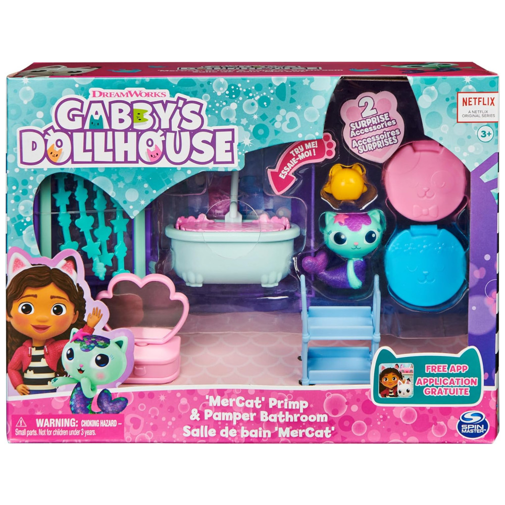 2 ENTREGAS PARA CASA DE BONECAS, 2 ACESSÓRIOS SURPRESA Descubra 3 acessórios um gatinho de pato de borracha e mais 2 nas Dollhouse Deliverys desembale os para encontrar perfume, um envoltório de toalha e uma máscara de pepino que o MerCat pode usar