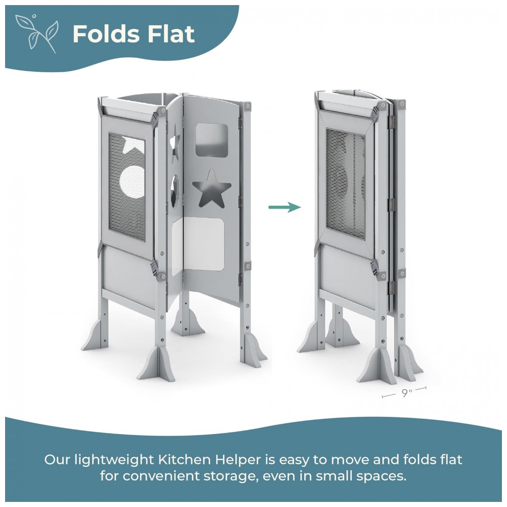 Banqueta Torre de Aprendizagem Dobrável Guidecraft Classic Kitchen Helper Cinza Madeira Bétula Altura Ajustável