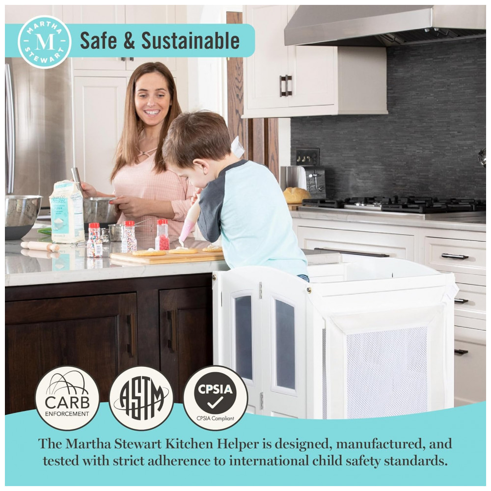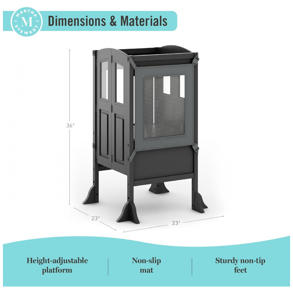 Móbile infantil auxiliar de cozinha Martha Stewart Kitchen Helper Guidecraft Carvão dobrável em madeira bétula com altura ajustável