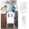 Conteúdo da embalagem: Torre auxiliar infantil dobrável, tapete antiderrapante, Kitchen Helper Keeper, ferragens e instruções de montagem