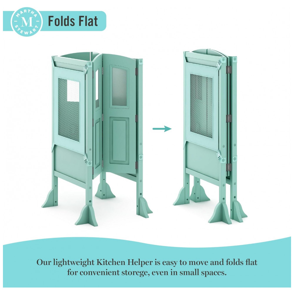 Banqueta Torre de Aprendizagem Dobrável Martha Stewart Kitchen Helper Menta Madeira Bétula Altura Ajustável