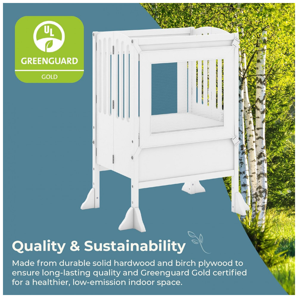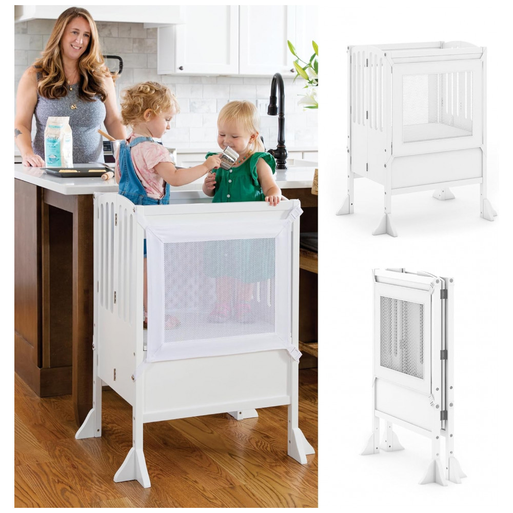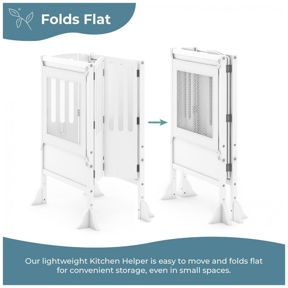 Banqueta Torre de Aprendizagem Dupla Dobrável Guidecraft Contemporary Kitchen Helper Branca Madeira Engenharia Altura Ajustável