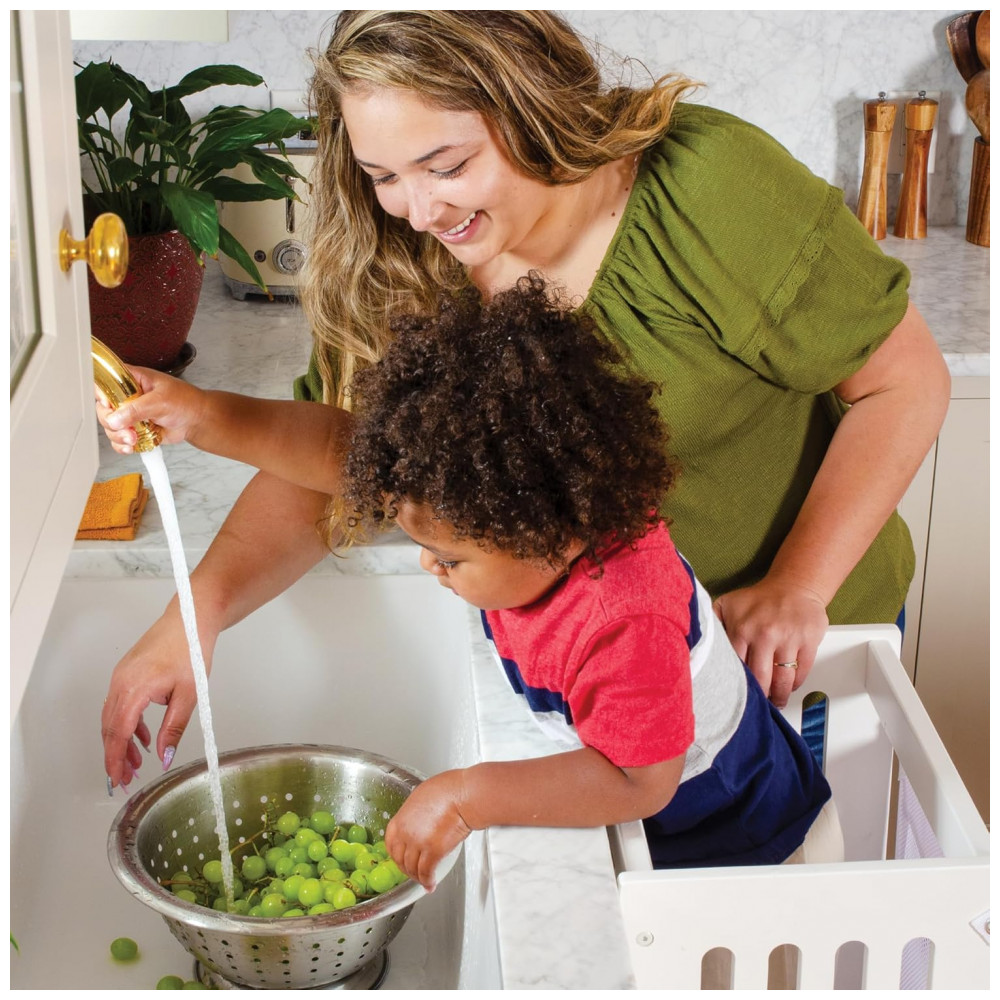 Banqueta Torre de Aprendizagem Guidecraft Jr. Contemporary Kitchen Helper Step-Up Branca Madeira Bétula Altura Ajustável