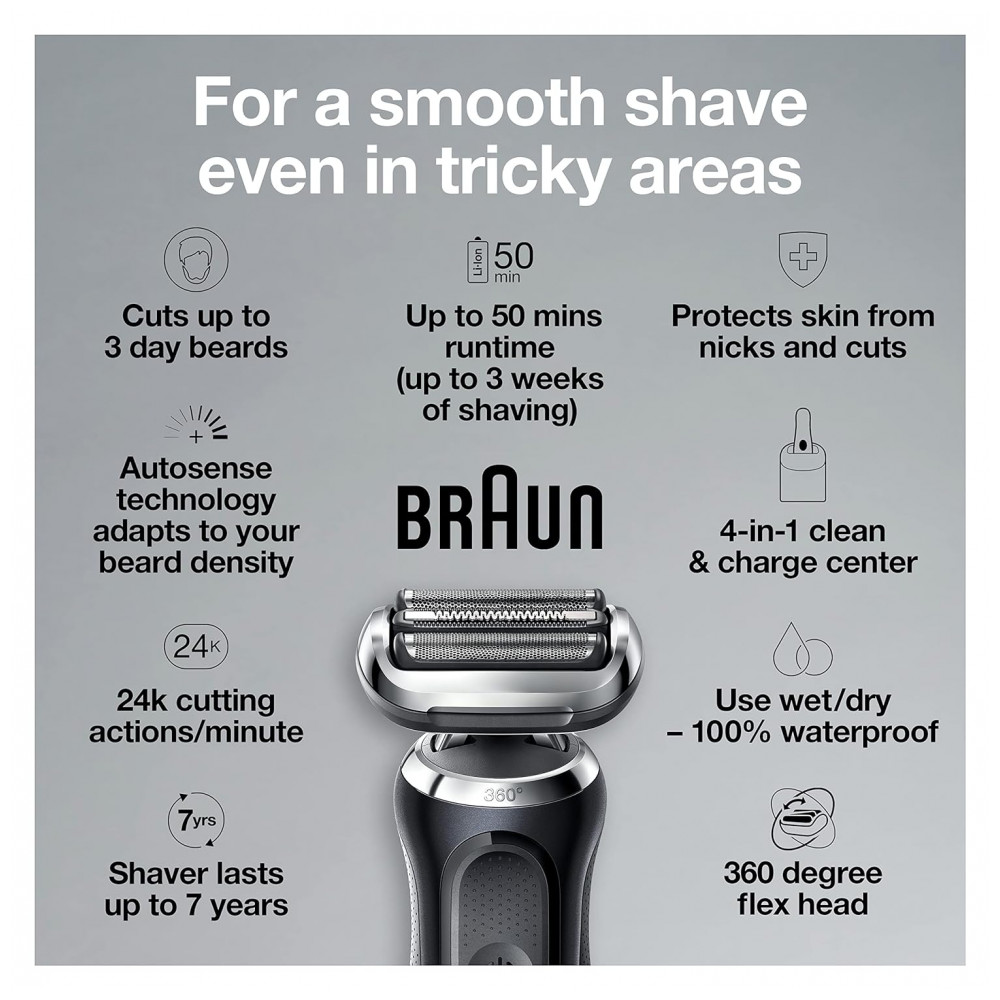 A tecnologia AutoSense lê e adapta a potência à densidade da barba. Raspar até barbas densas.