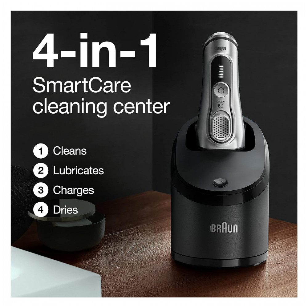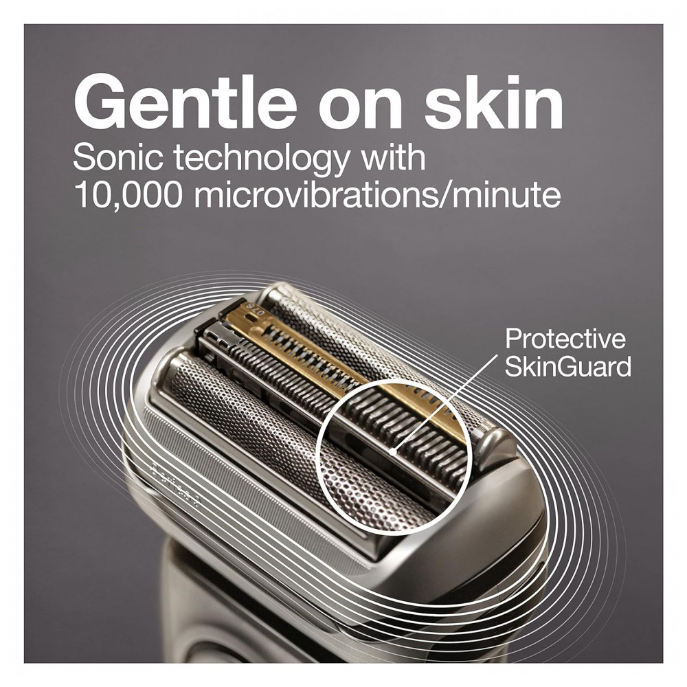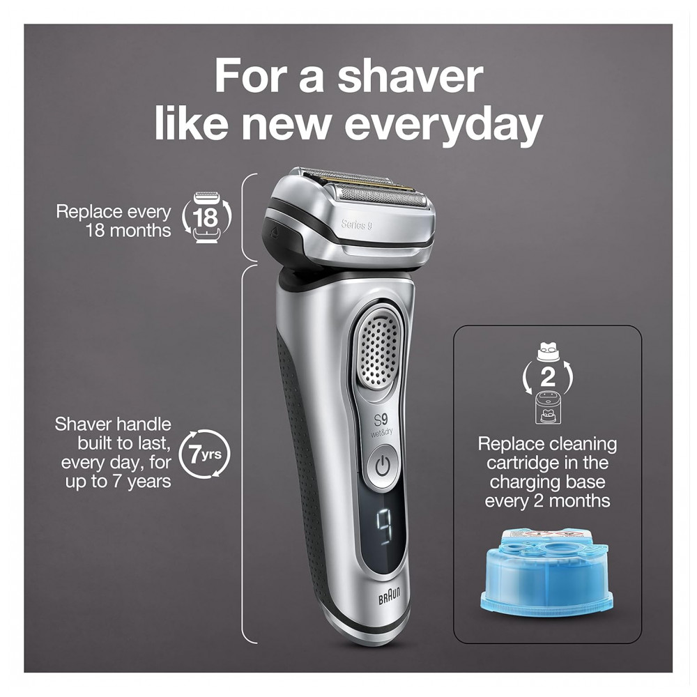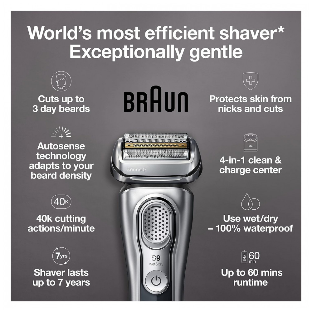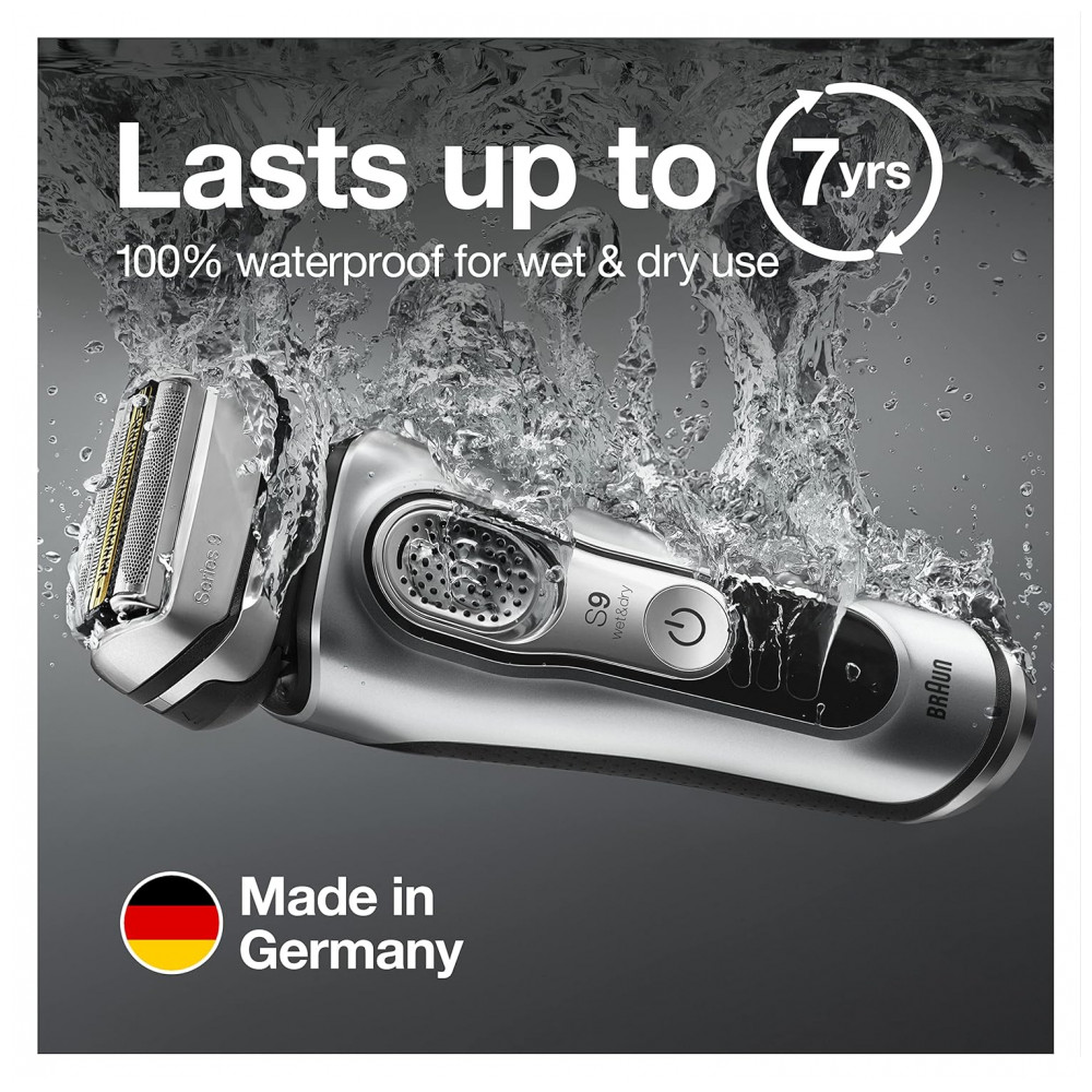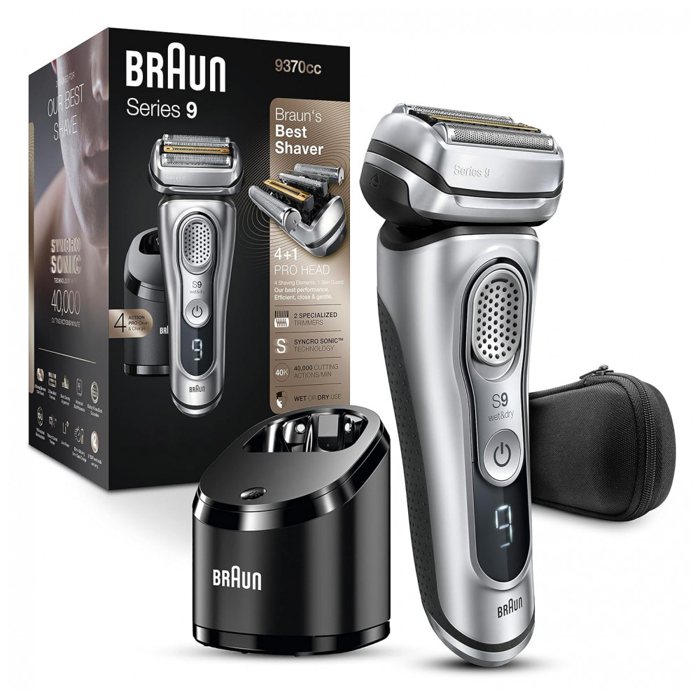 Barbeador Elétrico Masculino Portátil Braun 9370cc com Lâmina Úmida e Seca e Estojo Prata