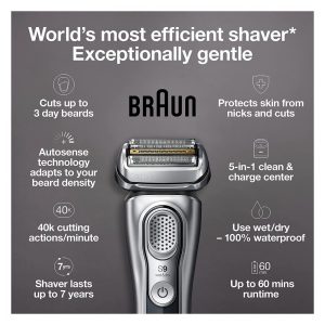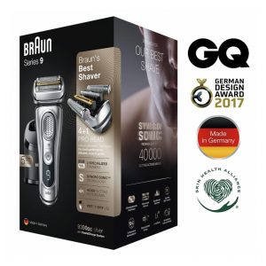 Barbeador Elétrico Masculino Portátil Braun 9390cc com Aparador de Barba Retrátil e Estojo de Couro Prata