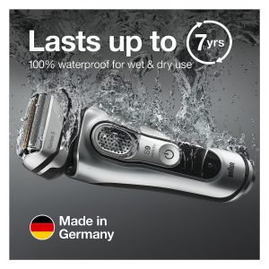 CONSTRUÍDO PARA DURAR Projetado e projetado na Alemanha para depilação com água, espuma ou gel para um barbear refrescante e pode ser submerso em água até 5 metros.