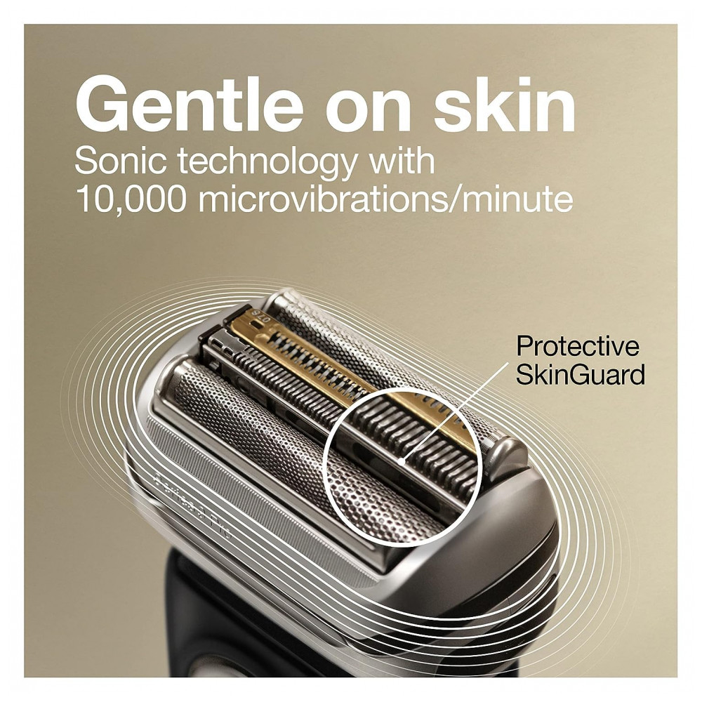 MAIS EFICIENTE E SUAVE O inovador aparador ProLift captura e corta pelos lisos, com a Tecnologia Sônica exclusiva da Braun que ajuda a barbear até 10 mais rápido e navegar em áreas complicadas, como lábio superior e pescoço, para um barbear extremamente rente, mas suave.