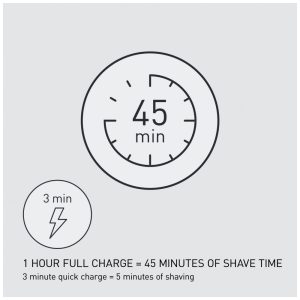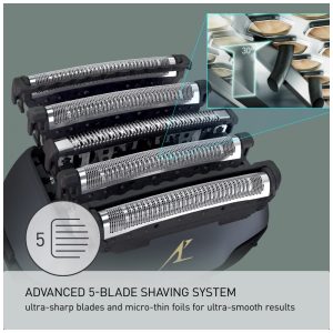 Um barbear incrivelmente rente lâminas internas de aço inoxidável, precisão afiada a 30 graus agudos e sistema de barbear de lâmina externa trabalham para levantar, capturar e cortar barbas grossas e densas com facilidade.