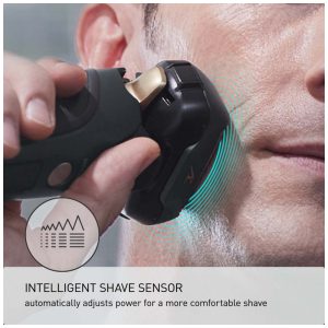 Sensor de barbear inteligente avançado detecta a densidade da barba 220 vezes, s e ajusta a potência 14 vezes, s enquanto você se barbeia, garantindo resultados suaves e uniformes.