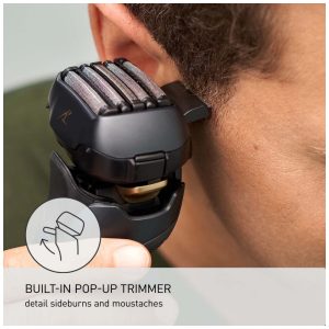 Operação a úmido, seco e aparador integrado o barbeador a seco e úmido permite que você se barbeie dentro ou fora do chuveiro Aparador retrátil embutido ultra afiado detalha bigodes, barbas e costeletas