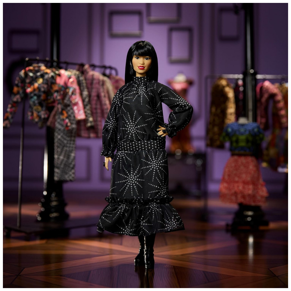 A Barbie Inspiring Women Anna Sui é uma boneca colecionável que homenageia a estilista Anna Sui, reconhecida por criar coleções que marcaram o estilo grunge dos anos 1990 e influenciaram a moda contemporânea. O modelo utiliza corpo curvilíneo articulado, adequado para poses de moda em prateleiras, vitrines e composições fotográficas.