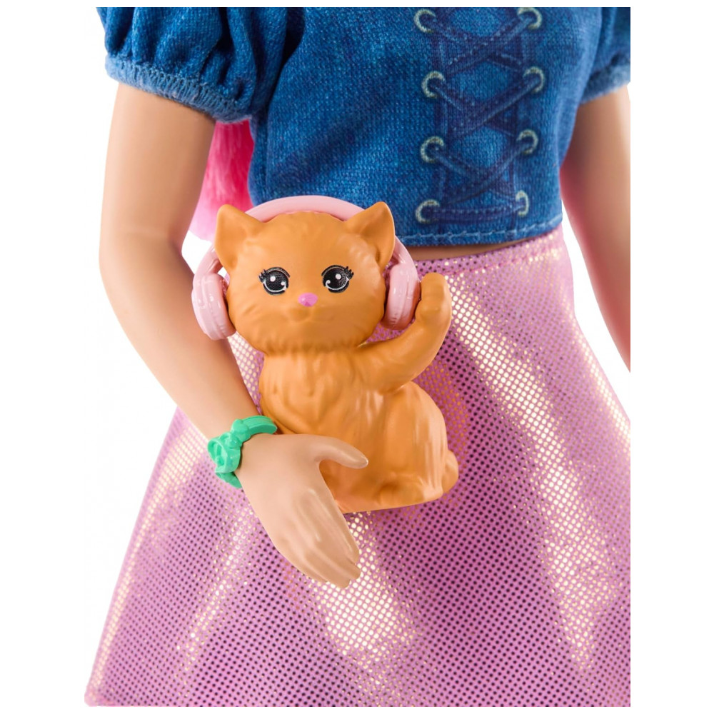 Conteúdo da embalagem: 1 boneca Daisy vestida, 1 pet gatinho, 1 colar, 1 pulseira, 1 par de óculos de sol, 1 fone de ouvido