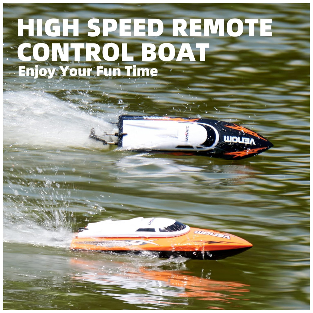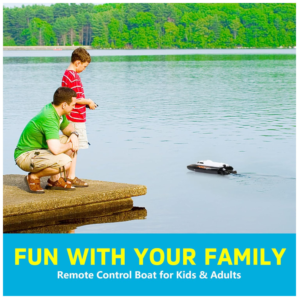 2.4 GHZ de alta velocidade o controlador de frequência de 2.4 GHZ suporta vários barcos rc para competir em sincronia A velocidade máxima de até 15 MPH 25km , h permite que você tire outros barcos de controle remoto da água Brinquedos de navio de corrida rc ideais para piscina e ao ar livre