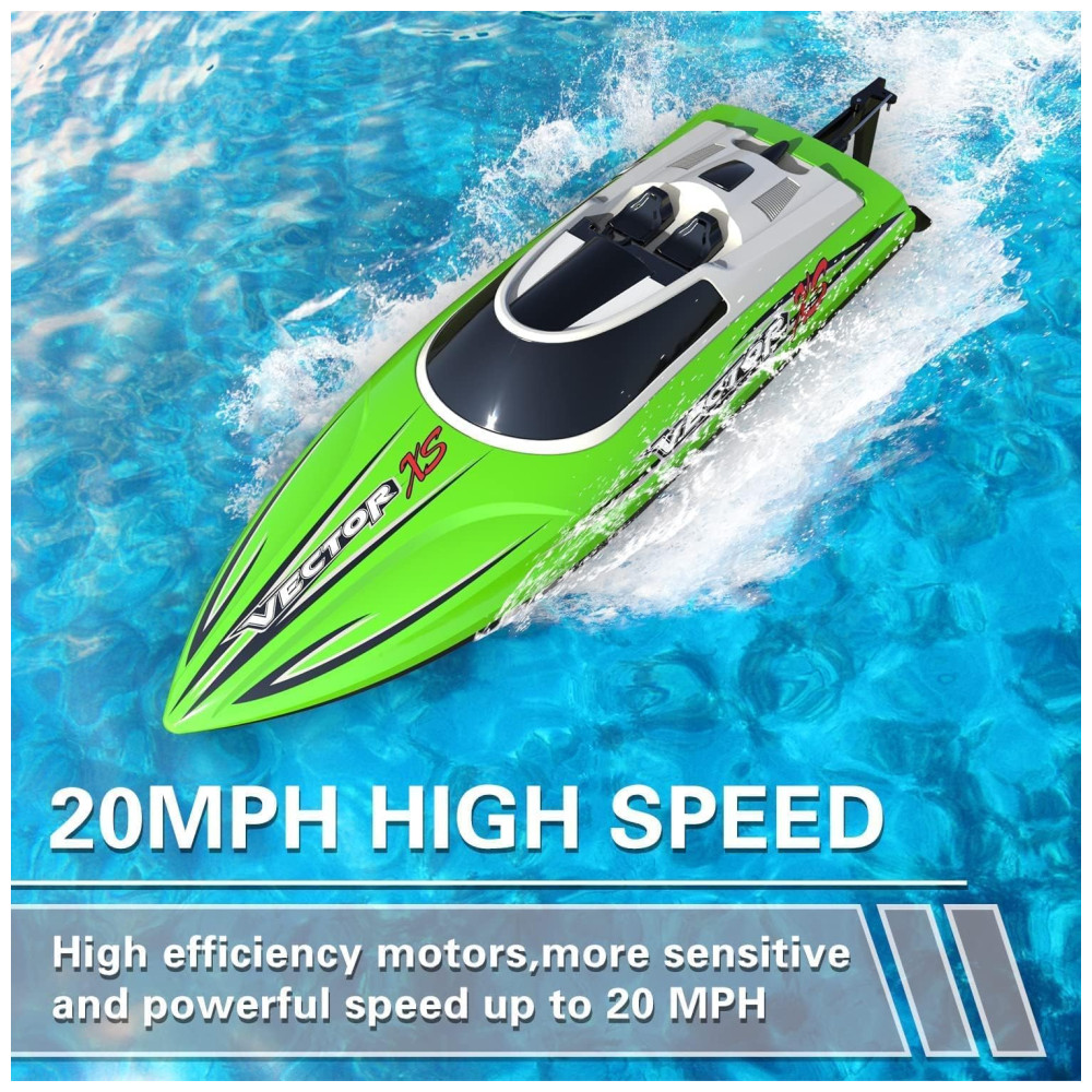 BARCO DE CONTROLE REMOTO DE ALTA VELOCIDADE Os barcos de brinquedo VOLANTEXRC RC para crianças e adultos correm na água até 32 km, h, este barco RC de alta velocidade equipado com um controle remoto de 2,4 GHz com um alcance de sinal de 120 metros.