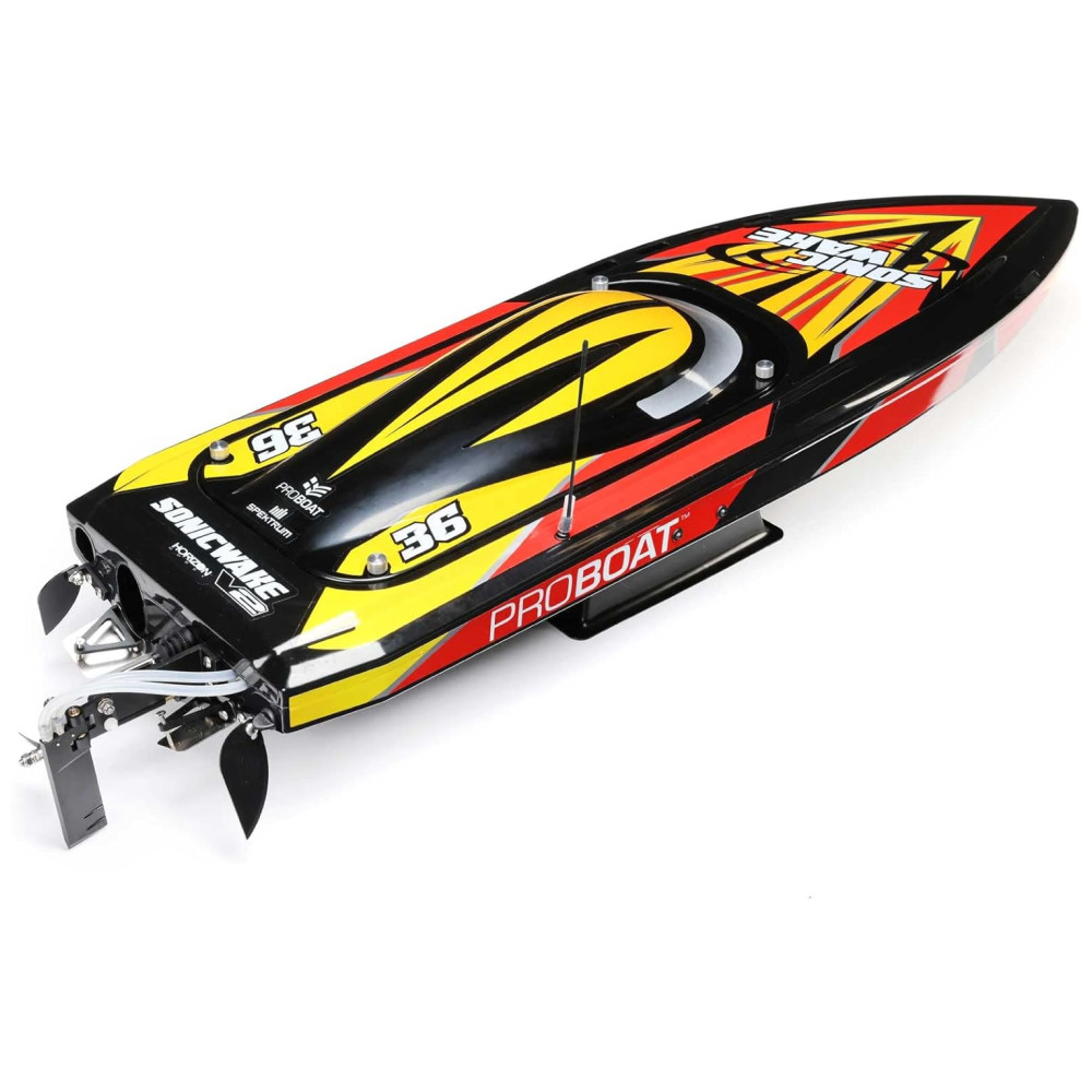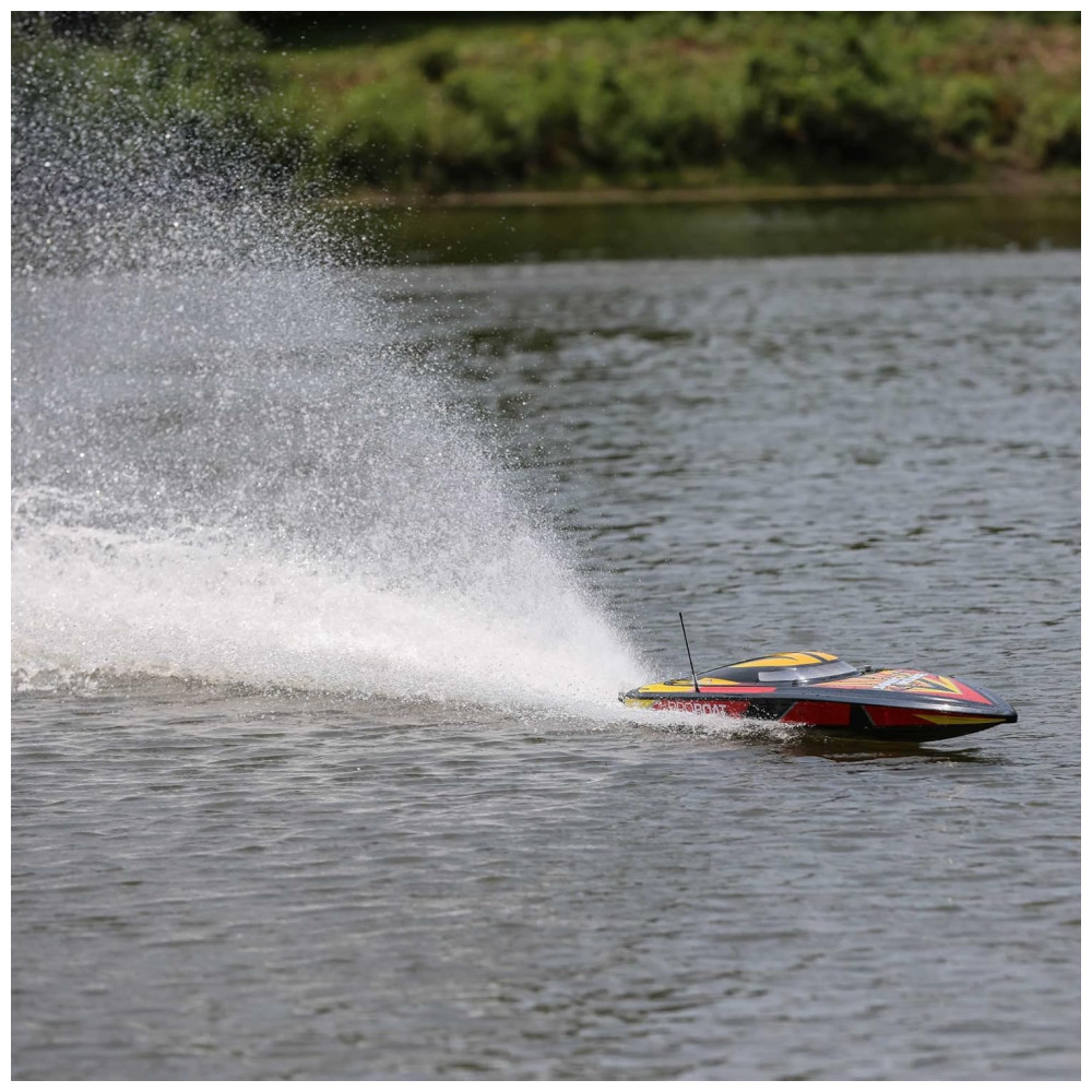 Barco de Controle Remoto para Adultos com Casco Auto-Endireitamento e Sistema de Rádio Pro Boat Sonicwake V2 Preto e Vermelho