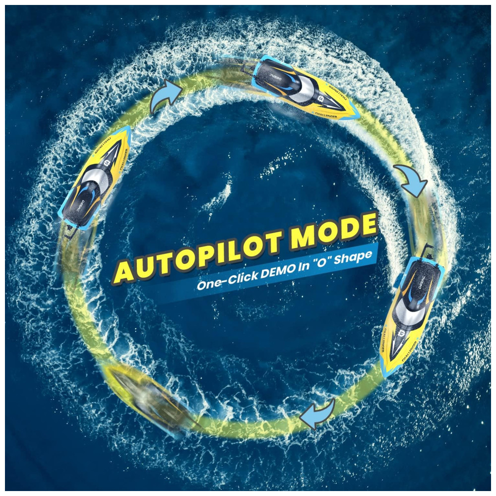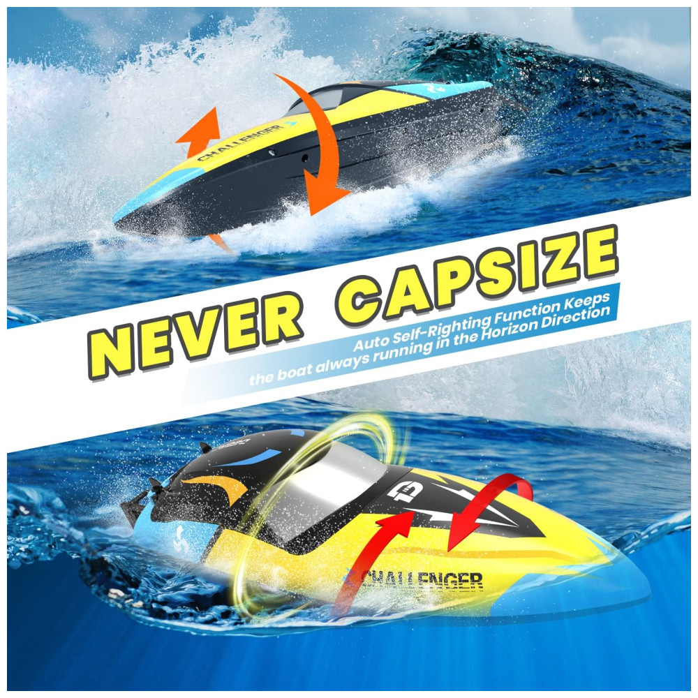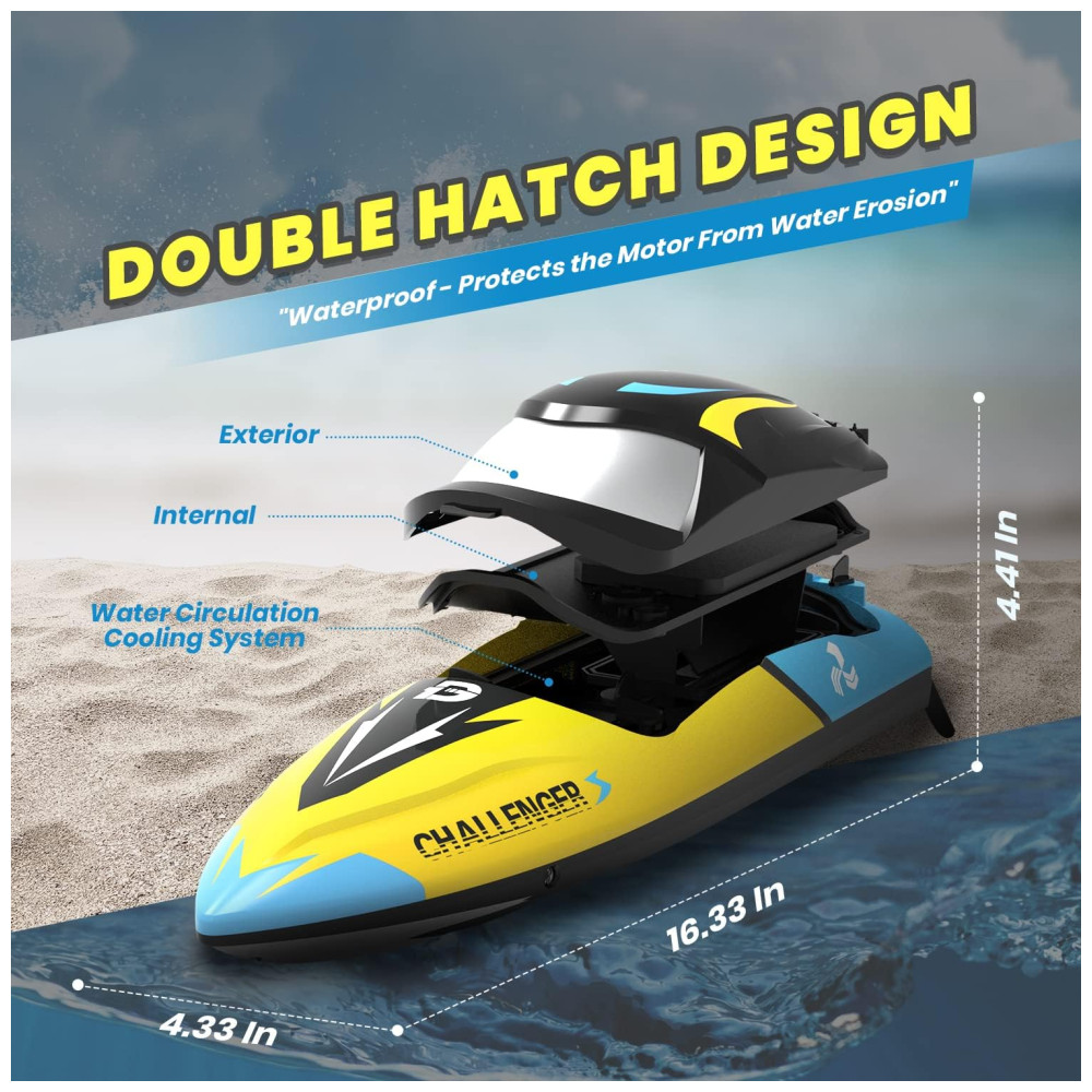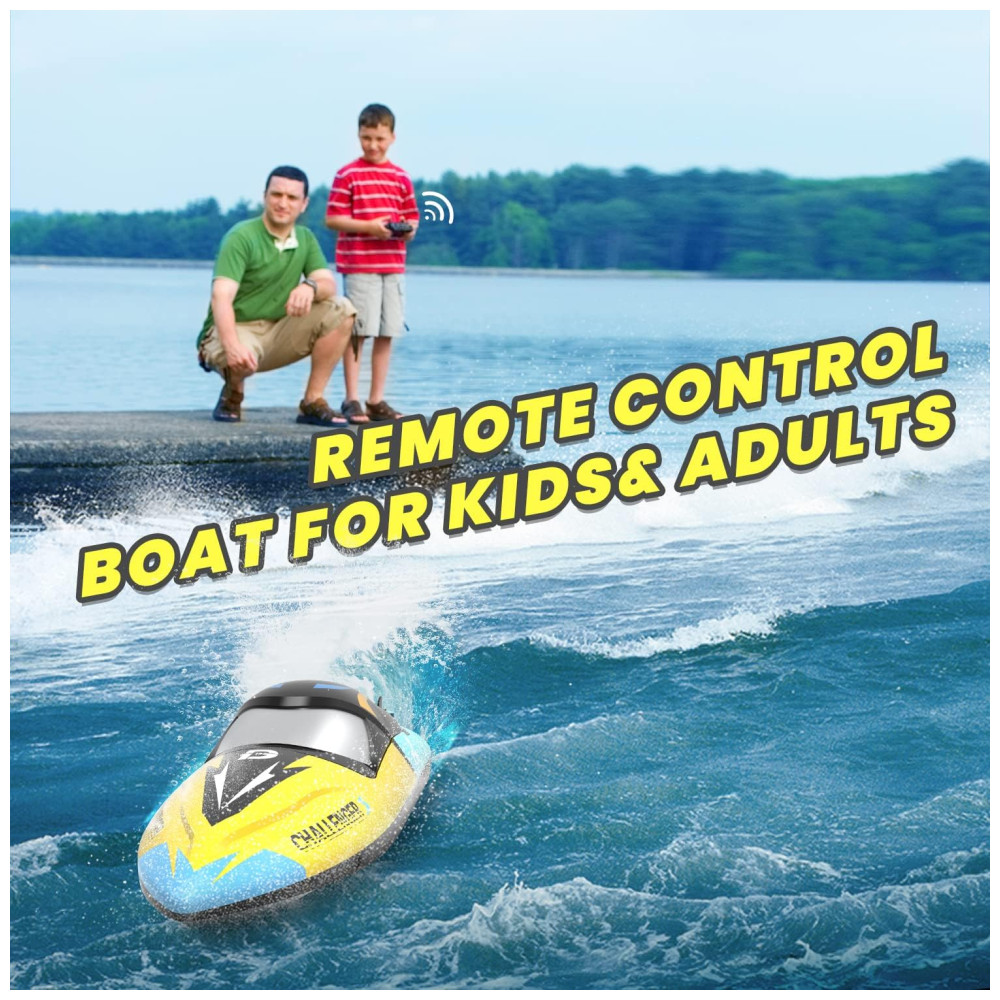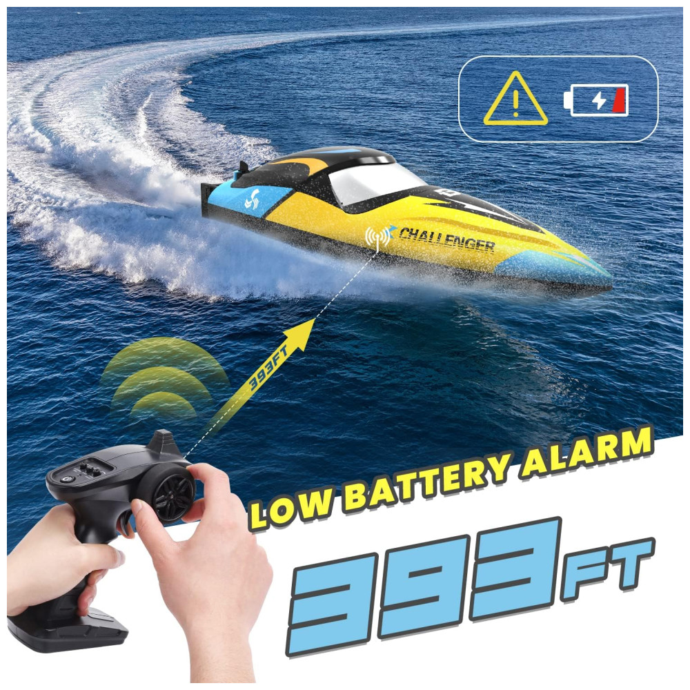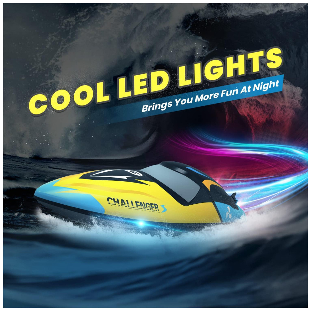Barco de Controle Remoto para Adultos com Velocidade Máxima de 48 km/h Luzes LED e Função de Alarme DEERC Amarelo e Azul