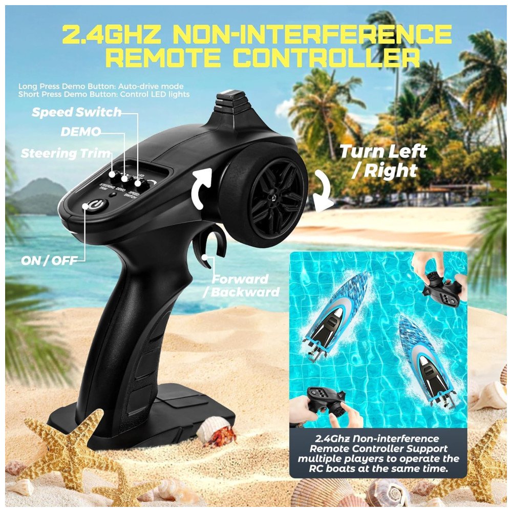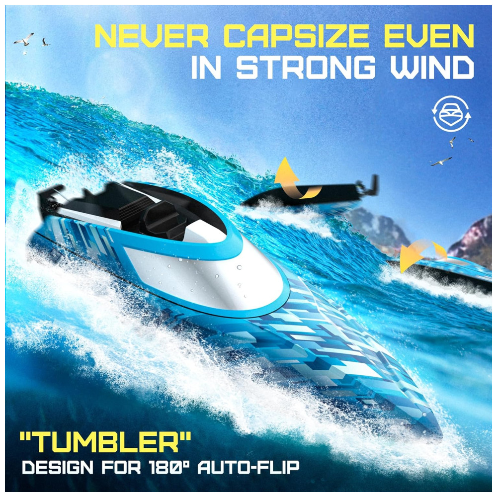 Este barco de controle remoto é ideal para uso em piscinas, lagos e rios, sendo perfeito tanto para crianças quanto para adultos. Com a função de rotação de 180 graus, ele consegue se levantar mesmo em condições adversas, como ventos fortes e ondas.