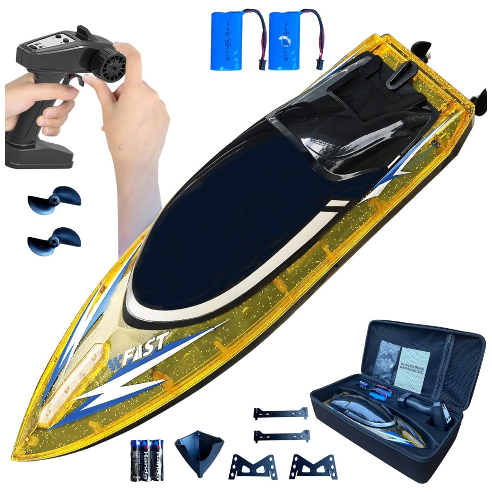 Barco de Controle Remoto para Adultos com Velocidade Máxima de 56 km/h Luz LED e 2 Baterias Recarregáveis RANFLY DYKC11 Dourado