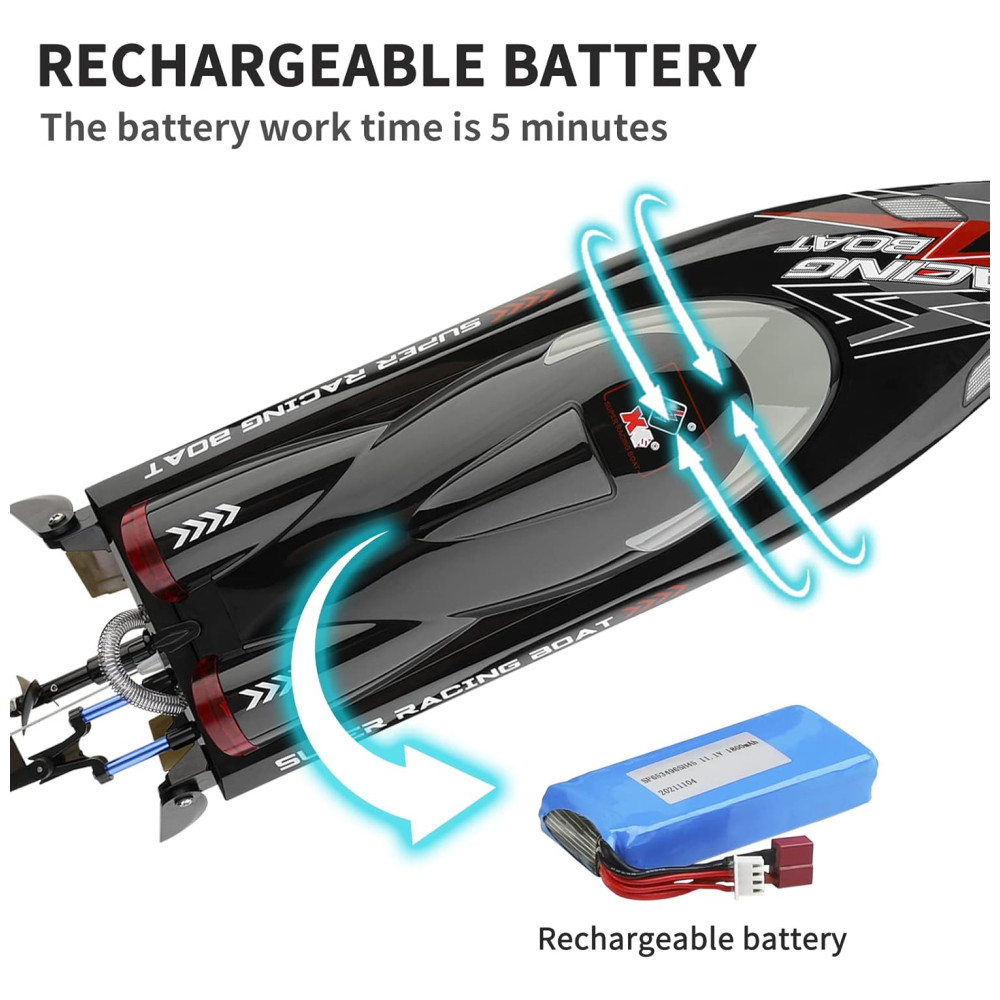 Barco de Controle Remoto para Adultos com Velocidade Máxima de 60 km/h e Alarme de Bateria Fraca GoolRC WLtoys WL916 Preto